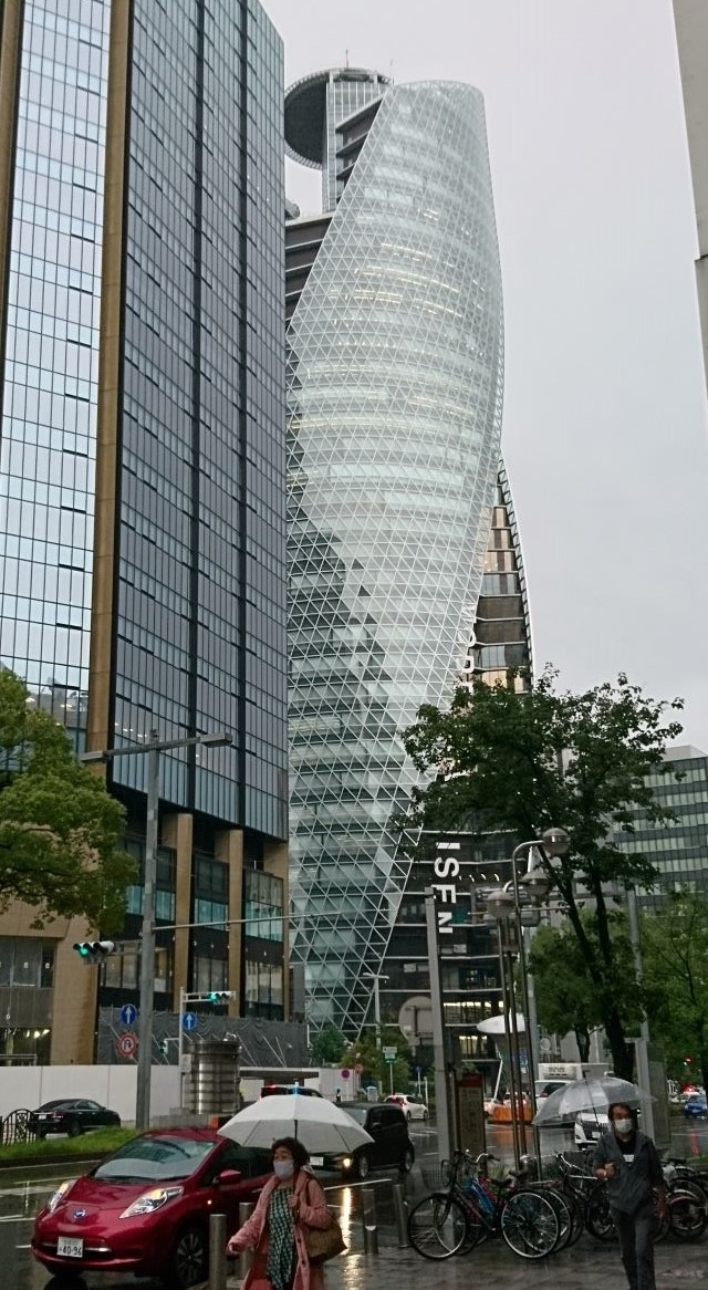 名古屋駅前は高層ビルが次々と建ってきて随分景観が変わってきている。その中でも異彩を放つビルがこの高層ビルだ。東京の新宿にも同じように途中でねじり曲がった様式のめずらしいフォームで有名なモード学園の名古屋のビルである。