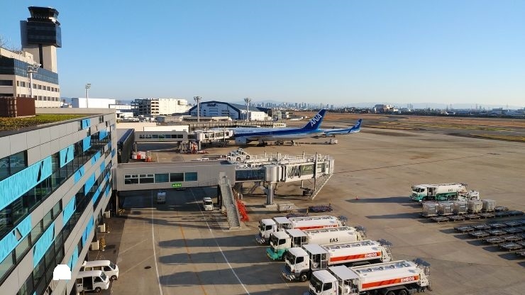 伊丹空港4階フロアにある展望デッキ。JAL系とANA系で搭乗エリアが分かれており、展望デッキもそれぞれ分かれて設置。展望デッキとしては広めに感じた。