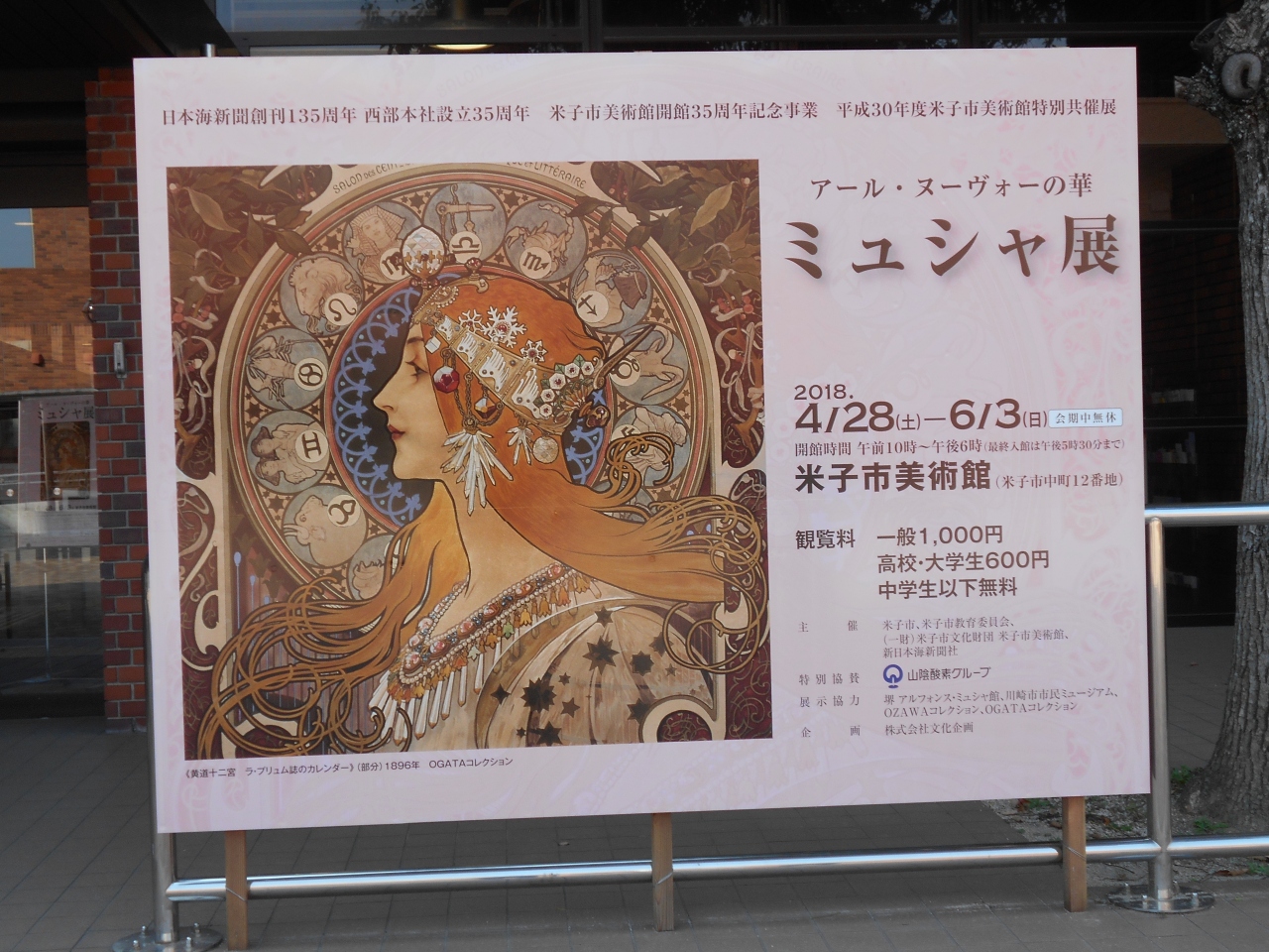 偶然、街中でミュシャ展の開催を知り、訪問しました。ミュシャはチェコ生まれのアール・ヌーヴォーの代表的な画家です。女性や植物を華麗な曲線で描きました。挿絵画家としての作品や商品パーケージなどの展示されており、洗練されたデザイン性に高いものも多く、楽しく鑑賞できました。