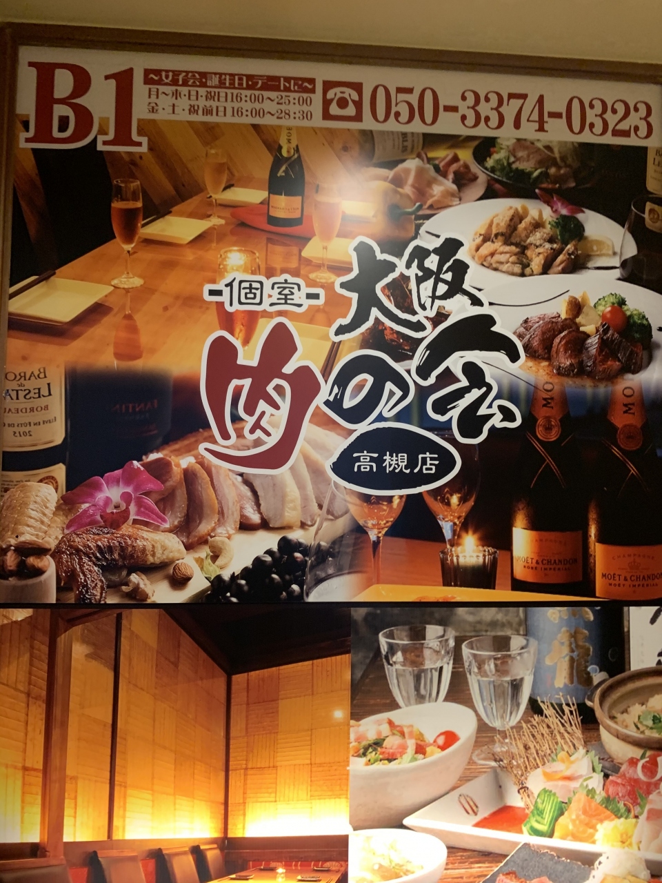JR高槻駅と阪急高槻市駅の間くらいのところにあるこのお店【 ラクレットチーズX 個室肉バル 大阪肉の会 】お店は地下1階です。個室なので今のコロナウイルス対策にも良さそう~「シカゴピザ」は のび~るチーズが 女性好みだと思います。SNS映え