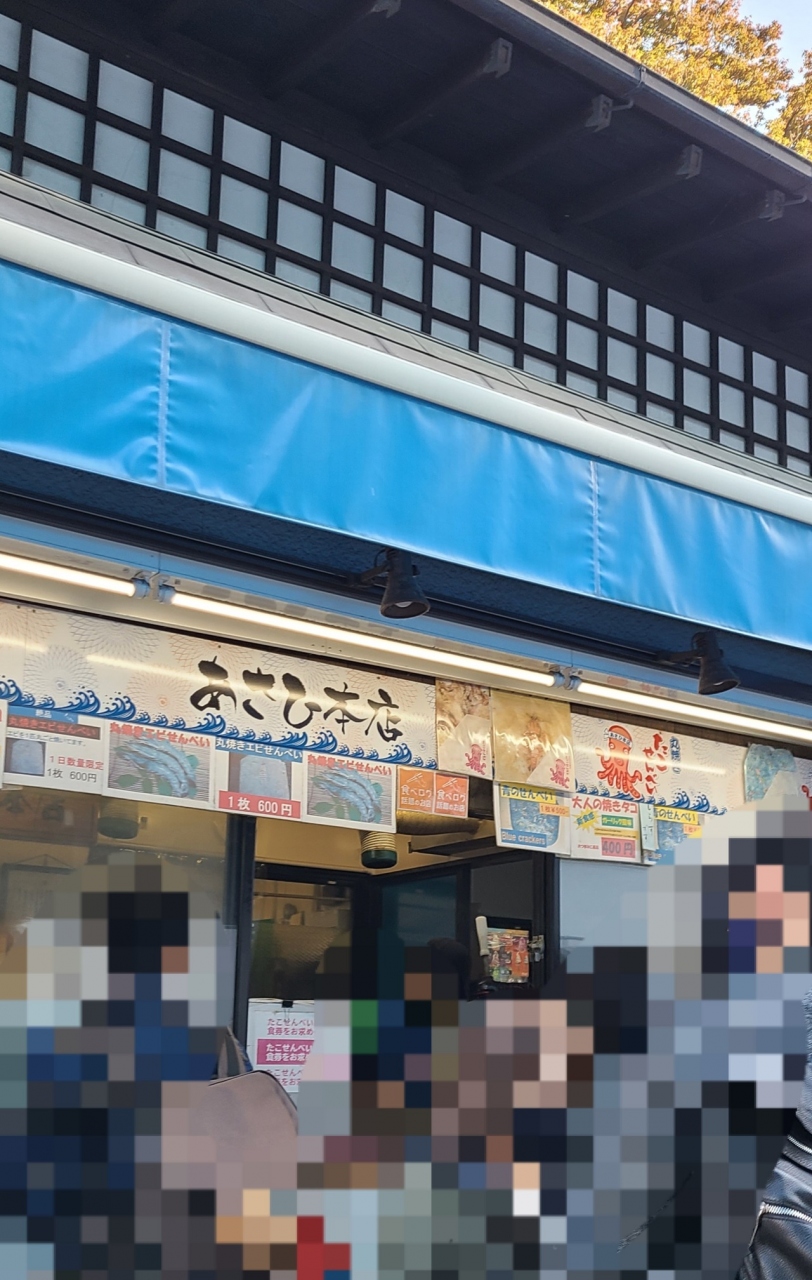 藤沢江ノ島、青銅の鳥居をくぐり、江ノ島神社へ向かう参道沿い(左)にあります。