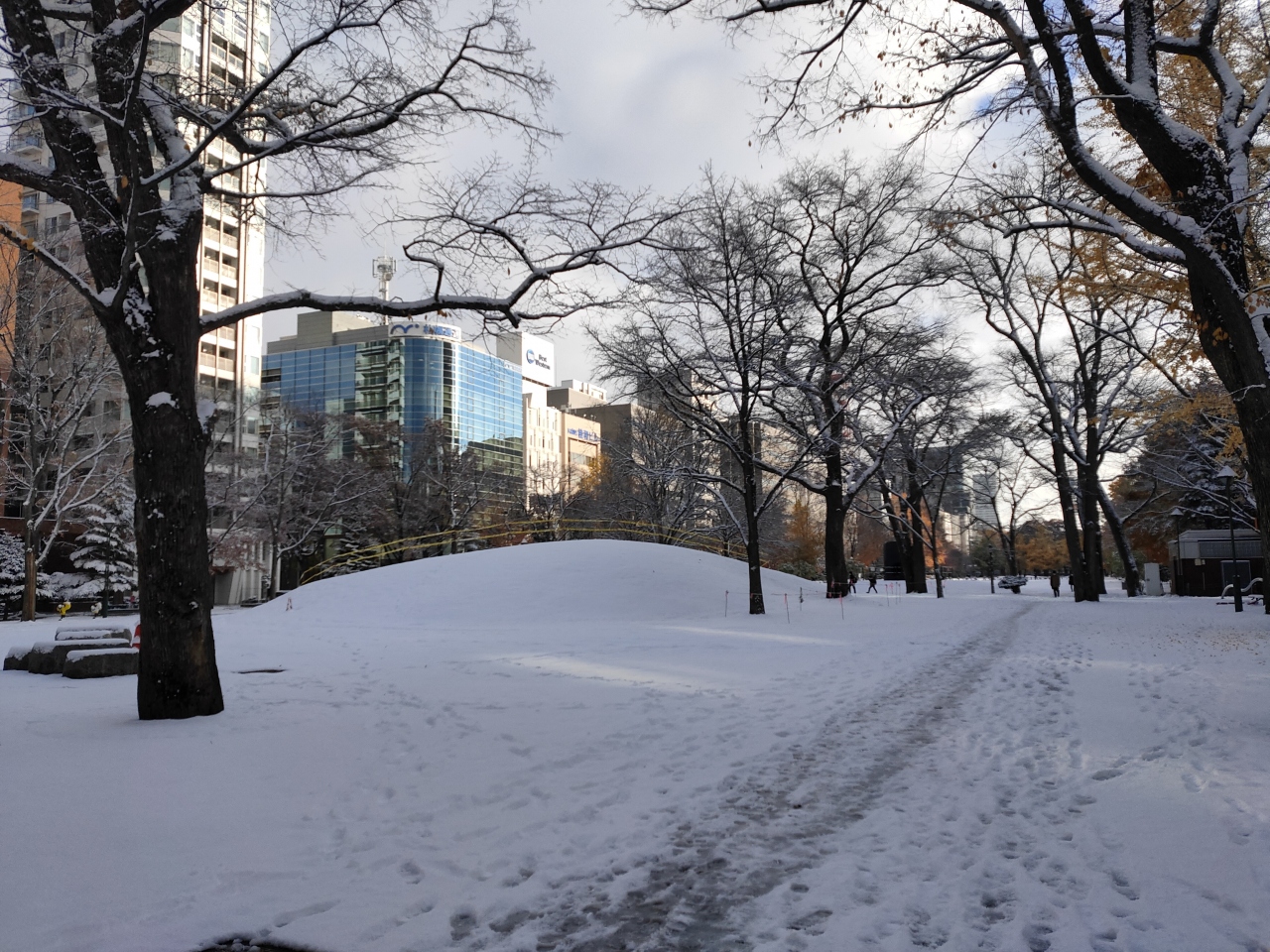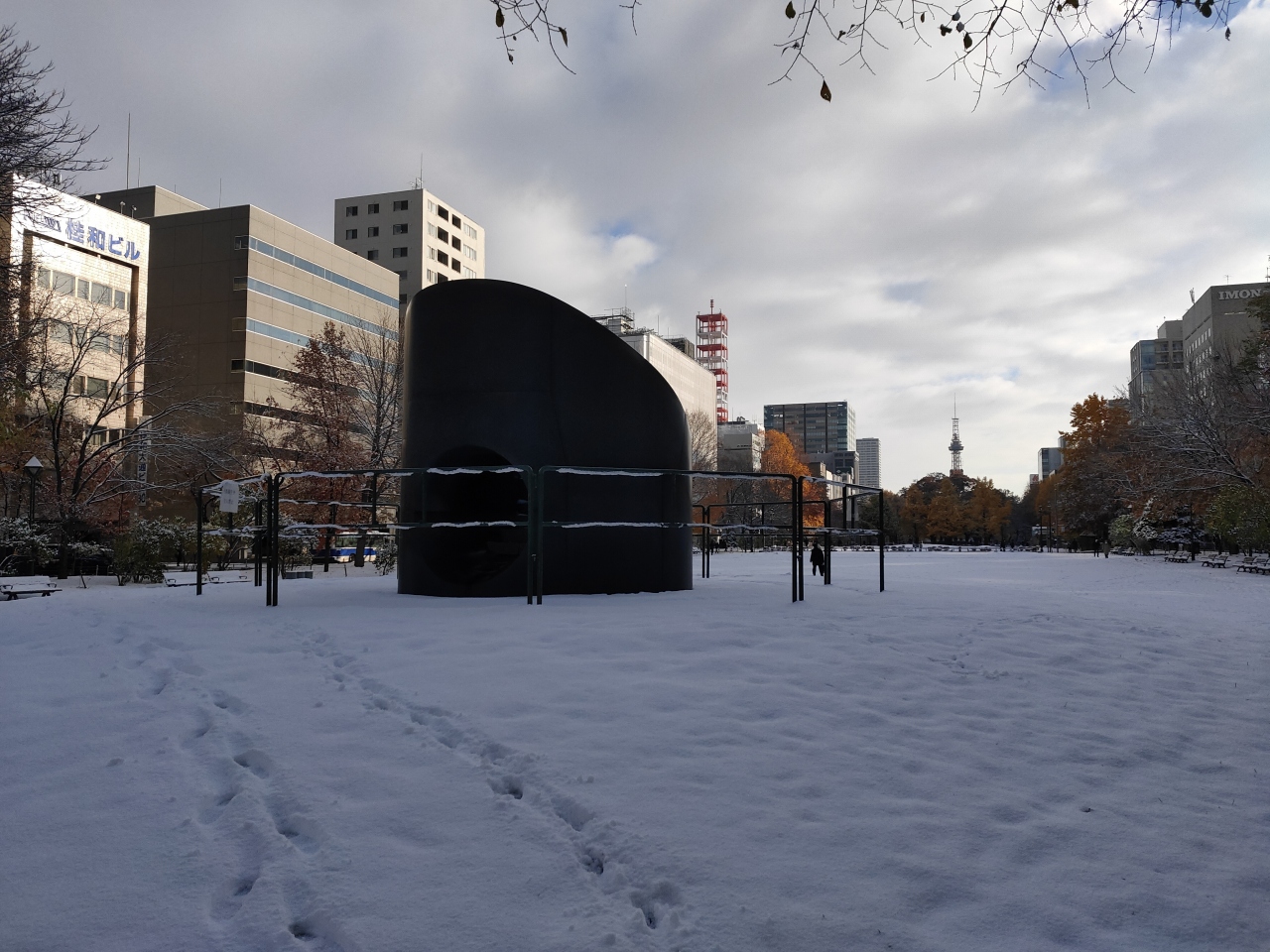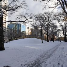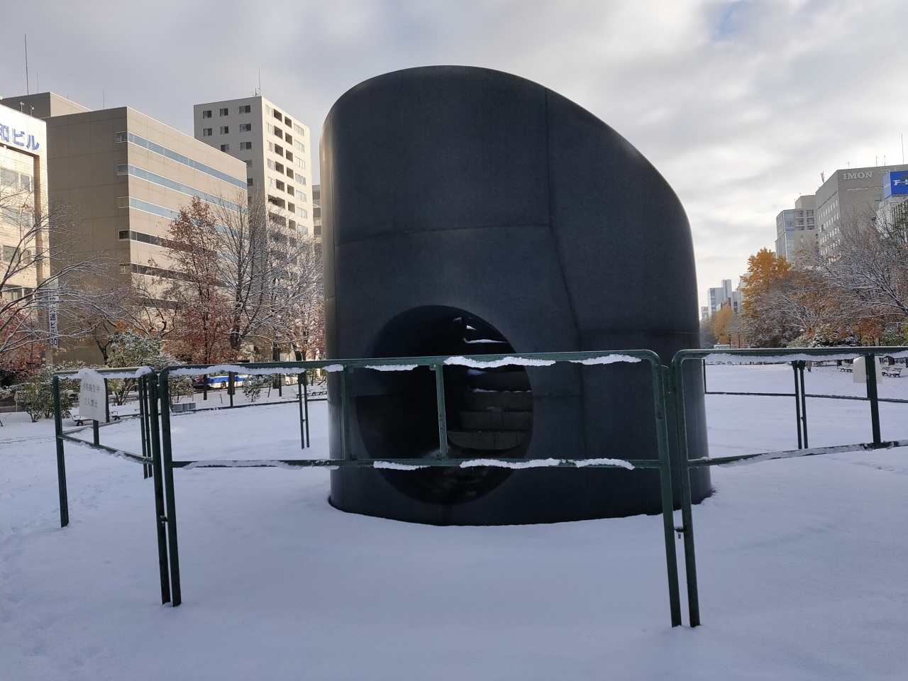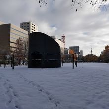 大通公園にあるイサムノグチ氏の屋外アート作品で、ミニ滑り台のようにして遊具としても機能します。