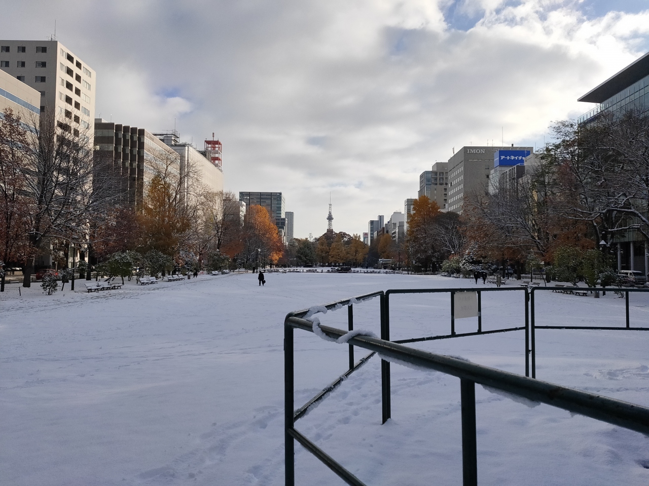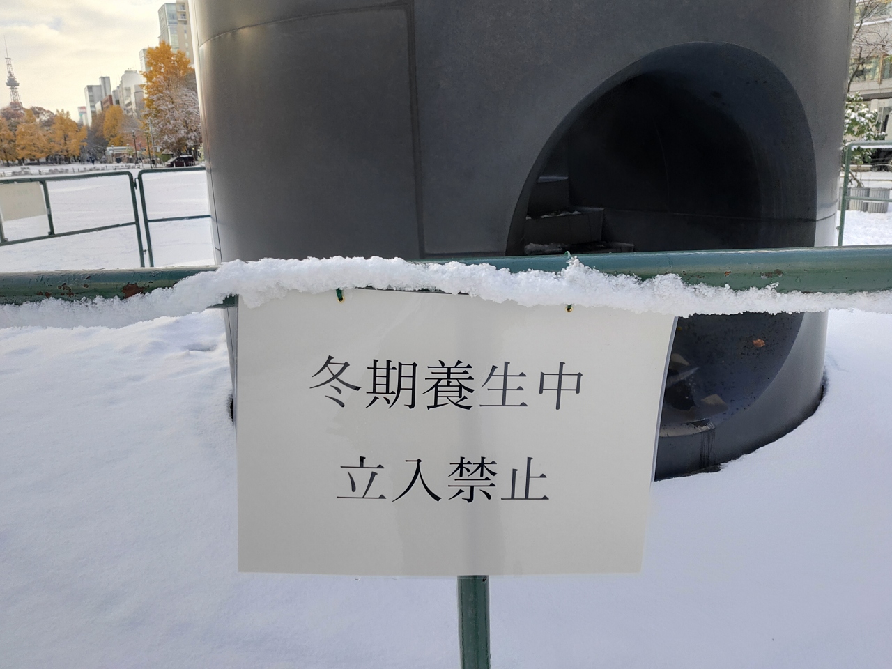 秋口、何回かの降雪では閉鎖せず、11月中旬ころに積雪になると縄張りがされ、間近に近づけなくなります。