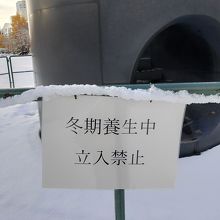 雪が積もる冬期は周囲に縄張りがされて閉鎖されています。