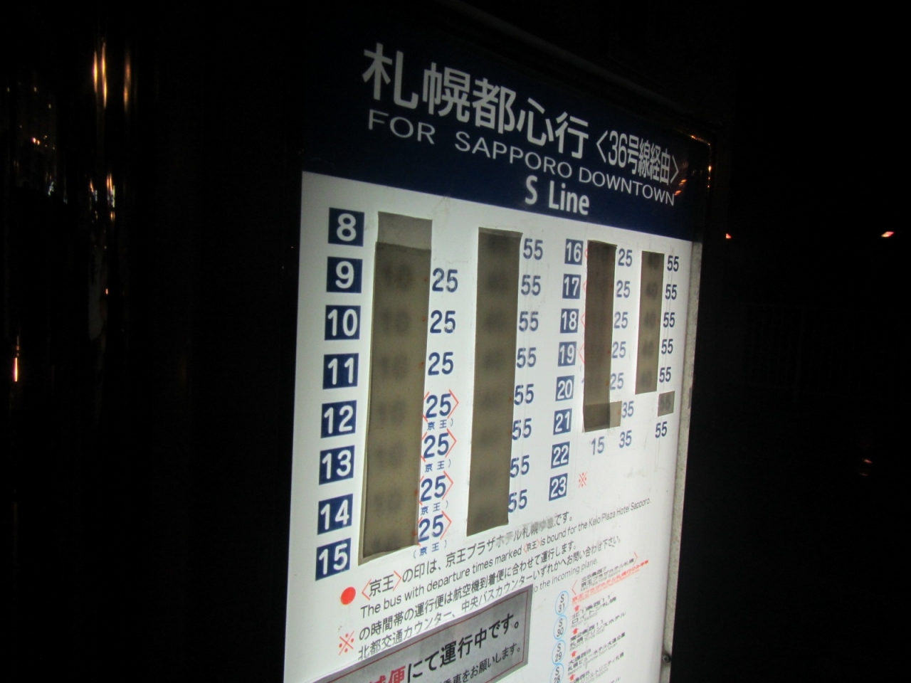 新千歳空港から札幌市内各方面行のバスがありますが、2020年現在、新型コロナウイルスの影響で減便が相次いでいて、特に札幌市南部の真駒内や円山公園行きなどの減便は著しく、現地住民の方は不便を強いられていますが、観光客が多く利用する札幌都心行きのバスも50%ほど減便されていて、30分に1本程度となっています。