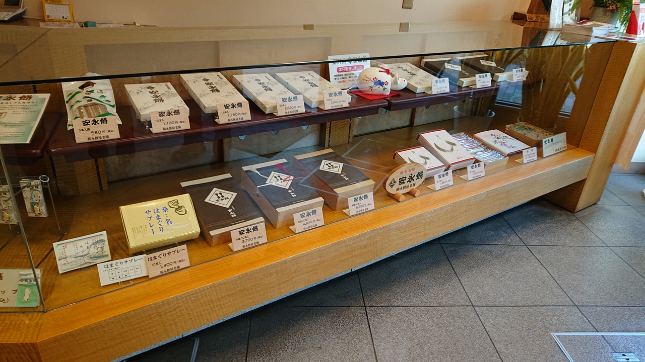 桑名駅に近い有楽町にある安永餅専門店です。なお、実際に訪問すると、安永餅専門店といっても、それ以外の品物も若干は扱っておられました。箱入りは10本からでしたが、バラでも買えるとのこと。よって、相談の上、必要な本数だけ購入しました。餅の食感を楽しみつつ、おいしくいただけました。