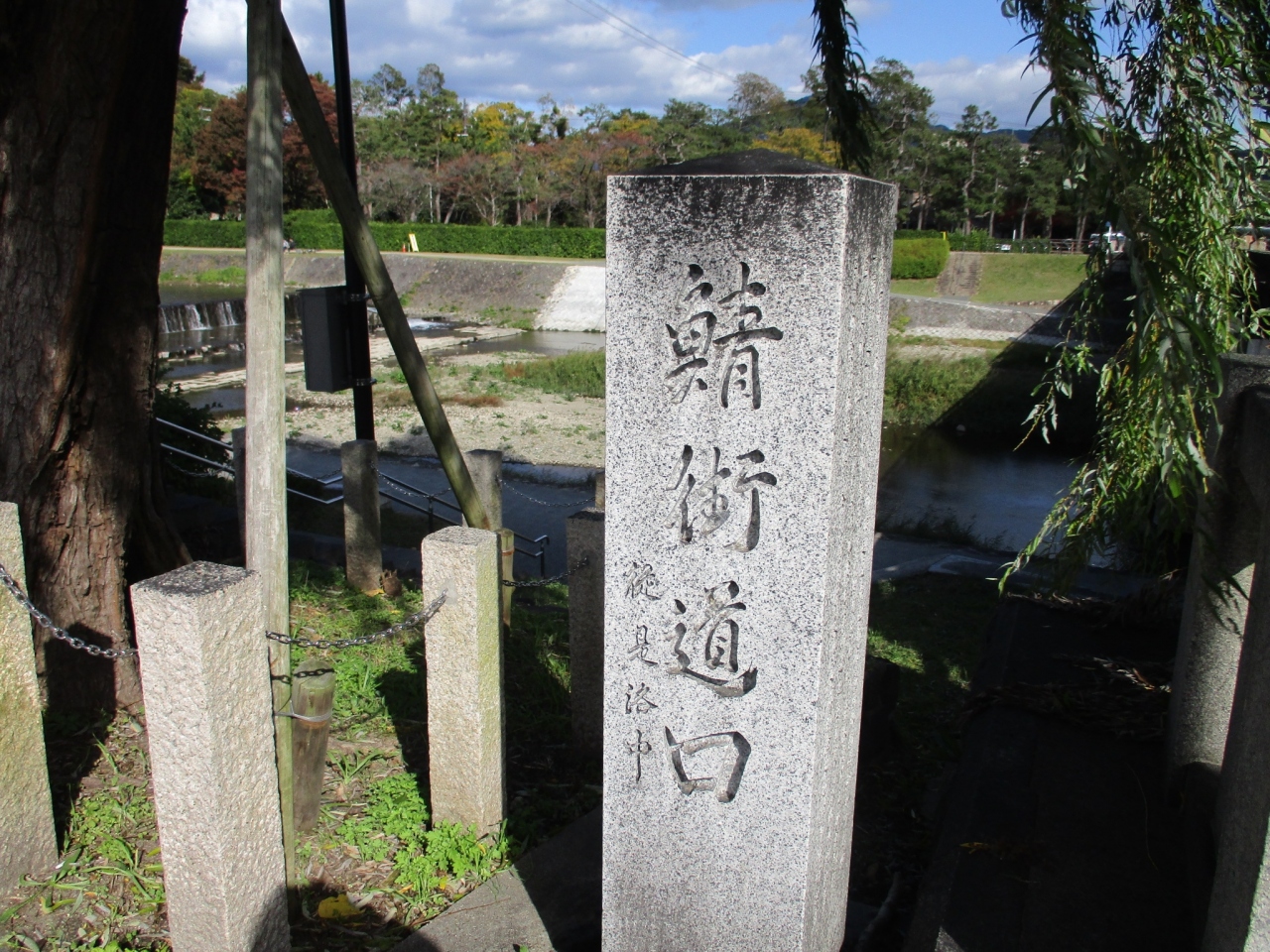 出町橋の西詰に「鯖街道口」という石碑がありました。ここは古来より若狭から京都へ鯖を主に海産物を運んでいたルートだそうです。鯖は塩漬けなど日持ちがするようにされていました。京都の鯖寿司は歴史があるんですね。初めて知りました。食べたくなりました。