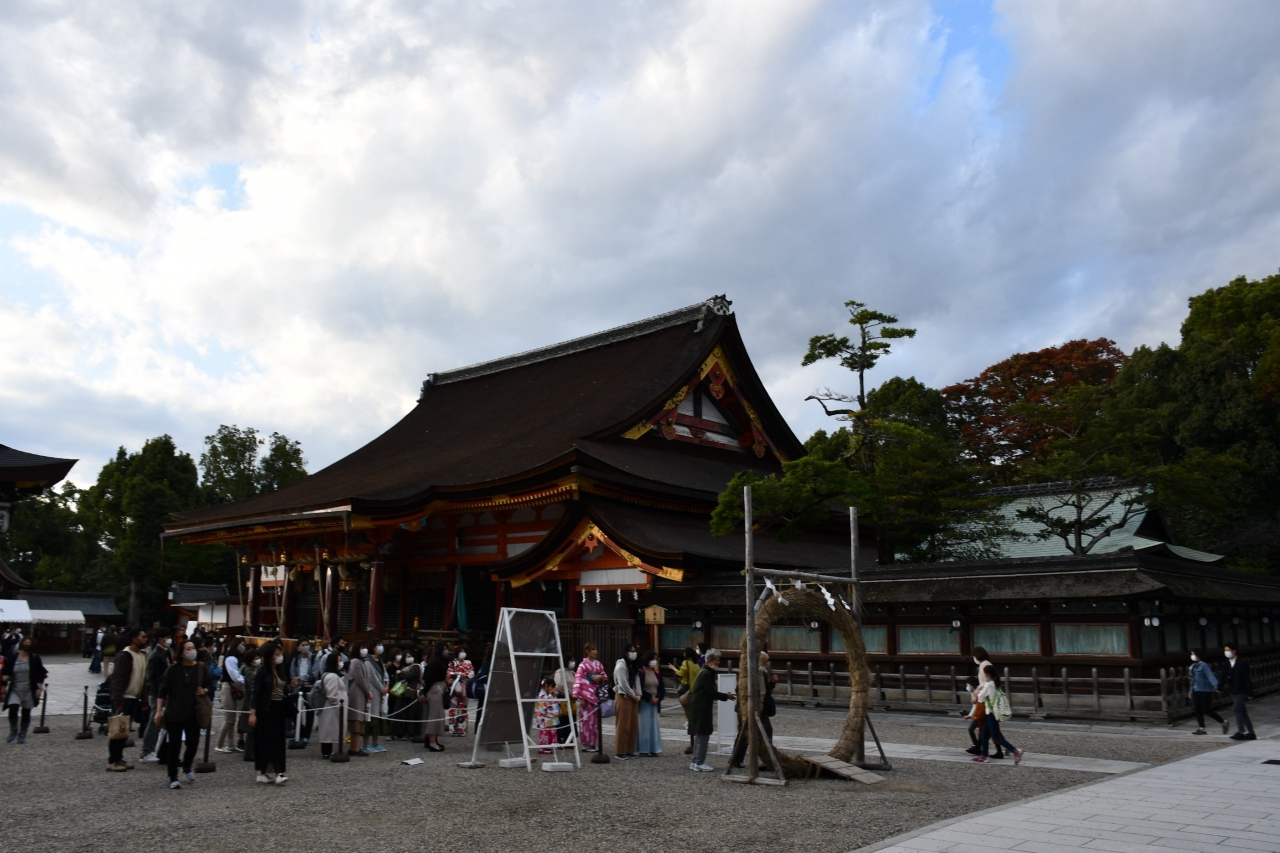 疫病退散を祈願して、秋晴れの一日、四条界隈を巡ってきました。四条通の突き当たり、京大坂では突き当たりを「どんつき」と言いますが、四条通の東端が八坂神社です。地元では「祇園さん」という通称です。地続きで円山公園、その北側が知恩院さんです。外出自粛も緩められて、人出が戻ってきました。