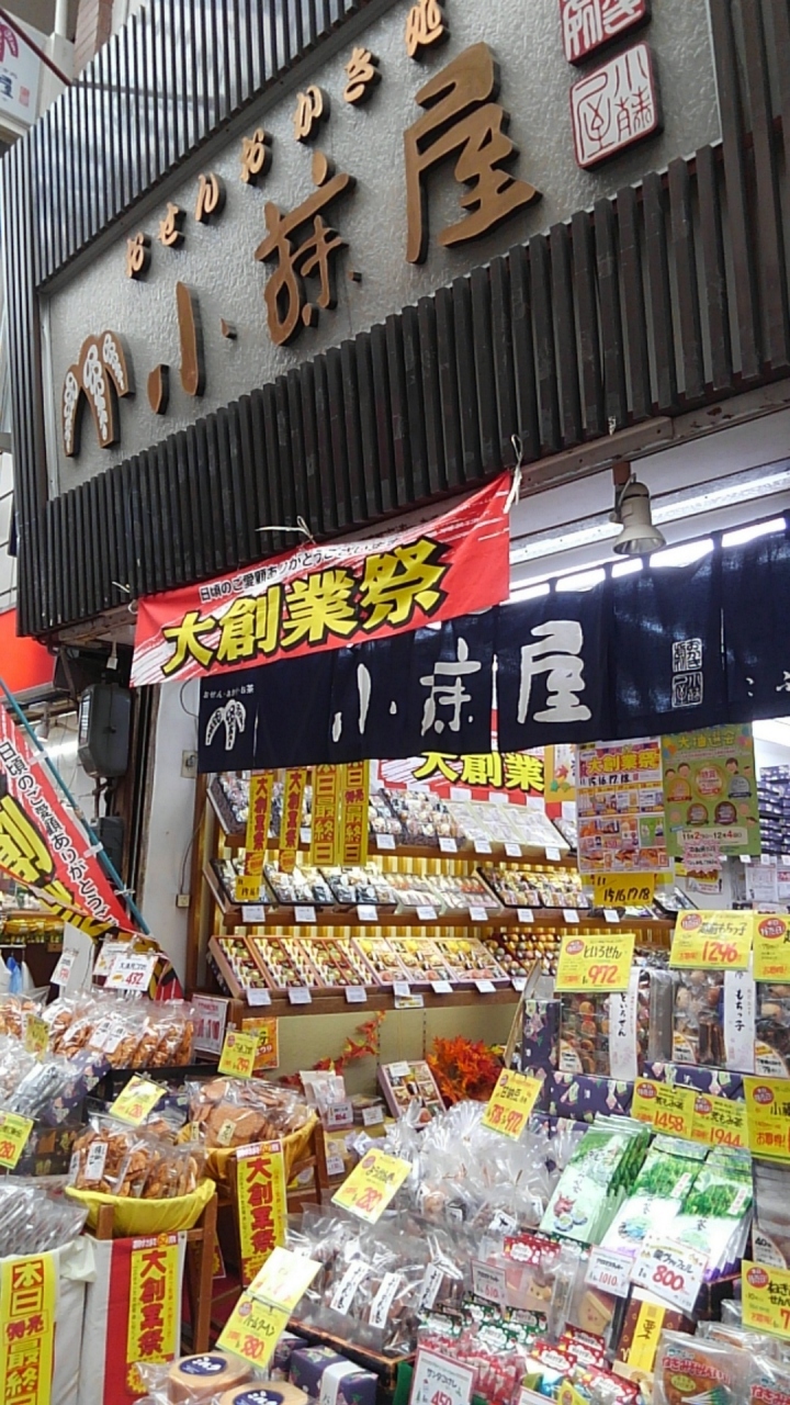小藤屋さんは、おせんべい店で、こちらのお店はJR十条駅すぐ近くにある十条銀座商店街の奥のほうにあるお店です。たまたま通ったときに大創業祭をやっていて、とても賑やかでした。ちょっとごちゃごちゃした感じがありました。