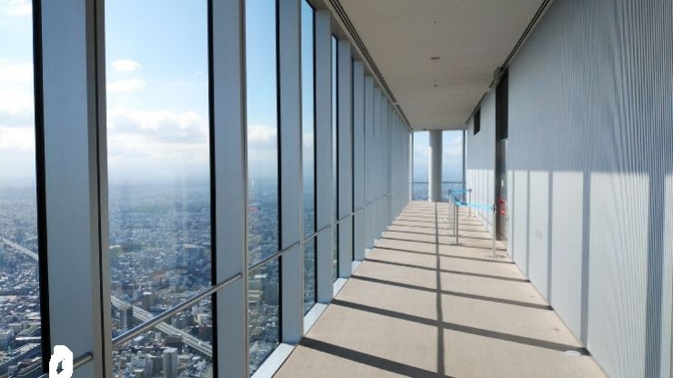 天王寺駅隣接のビル、あべのハルカスに設けられた展望施設。高さ300メートルは横浜ランドマークタワーを抜き全国1位の高層ビルとなった。展望フロアは58階から60階にかけてあり、これは東京スカイツリーに次いで2位の高さとのこと。