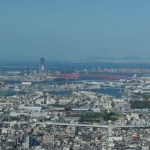 フロアは360度の眺望が楽しめるようになっており、大阪周辺の都市化された街並みやベイエリアの方向まで様々な風景が楽しめた。