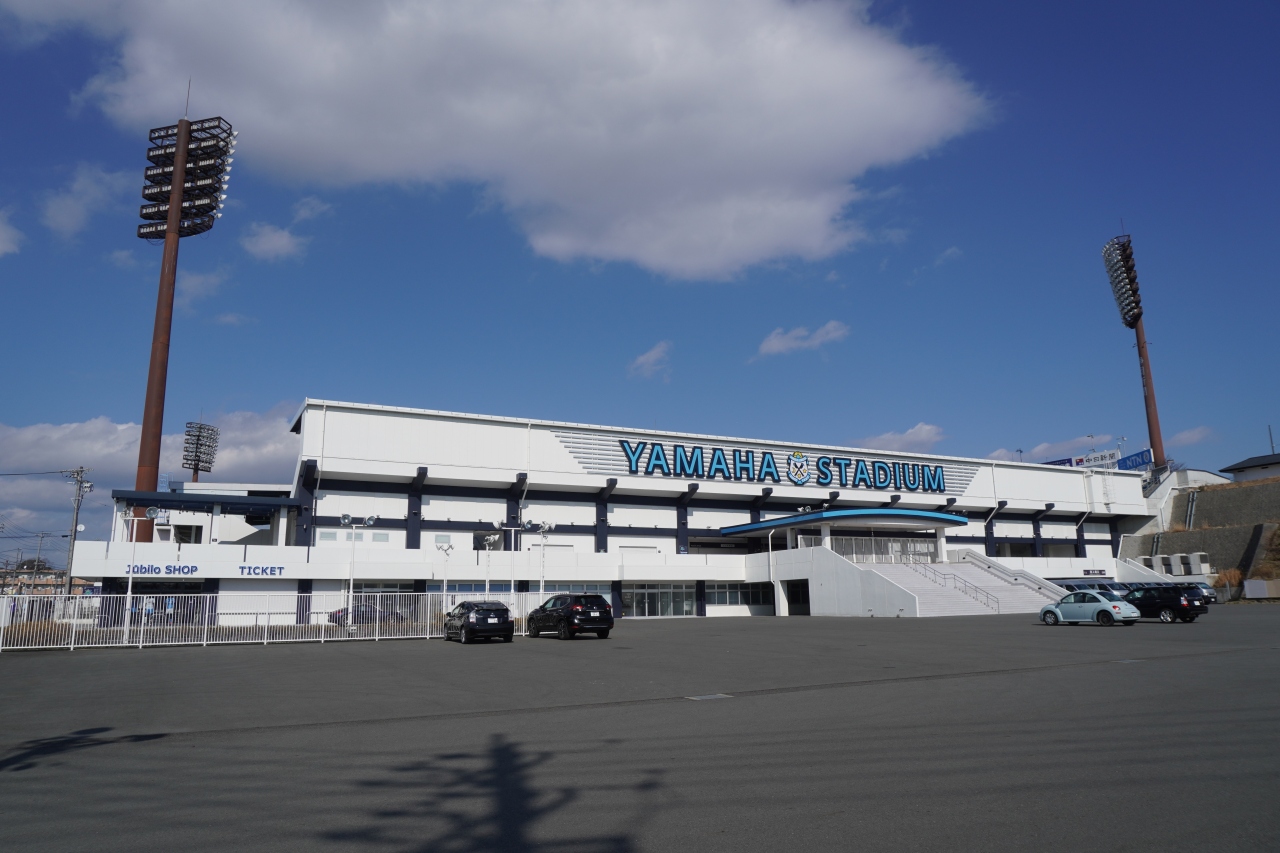 ヤマハスタジアムは、ジュビロ磐田のホームスタジアム。磐田市の中心部から向かうと長い下り坂の先に見えてきて、ちょっと独特の雰囲気。サッカーの試合がある時はこの下り坂を多くのサポーターが行き来するのかと想像しました。外観を見ただけでしたが、ヤマハスタジアムのロゴが美しくて、かなりテンションが上がりました。今の磐田市を象徴するような施設だと思います。