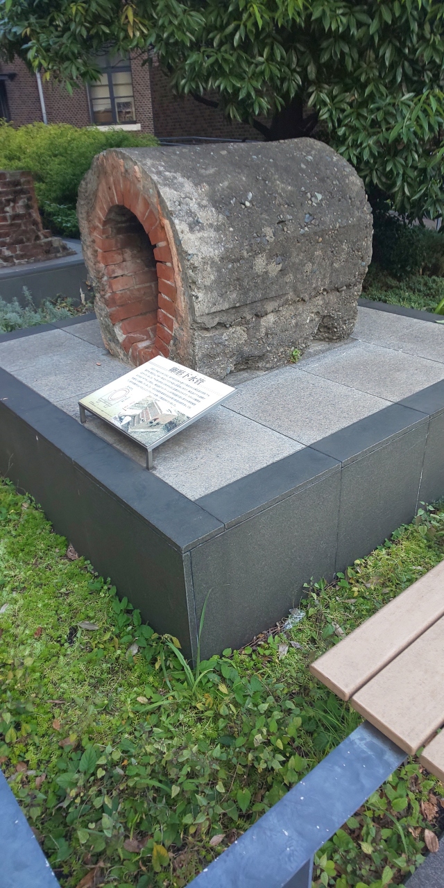 神戸の旧居留地でもこのような下水管の遺構を見たことがありましたがこちらもそれに似ているなと思います。というかほぼ同じ。