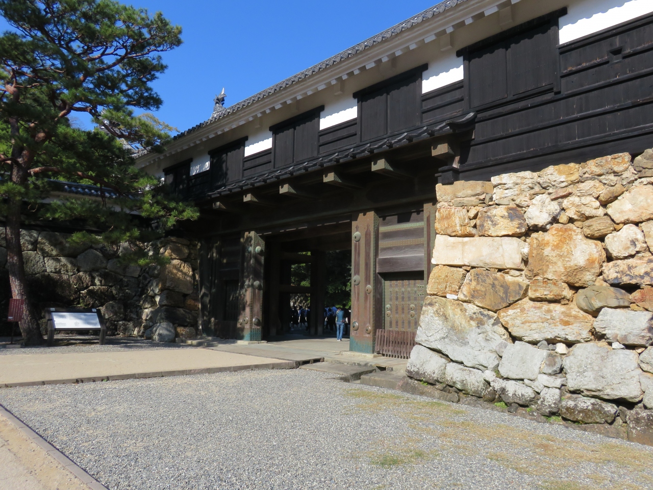 高知城の正面大手である黒塗りの追手門です。門前は桝形を形成しており、防御は固いと思われます。高知城は現存12城の一つであり、江戸時代に造られたものが残っている城です。追手門や石垣もその長い歴史を伝えています。