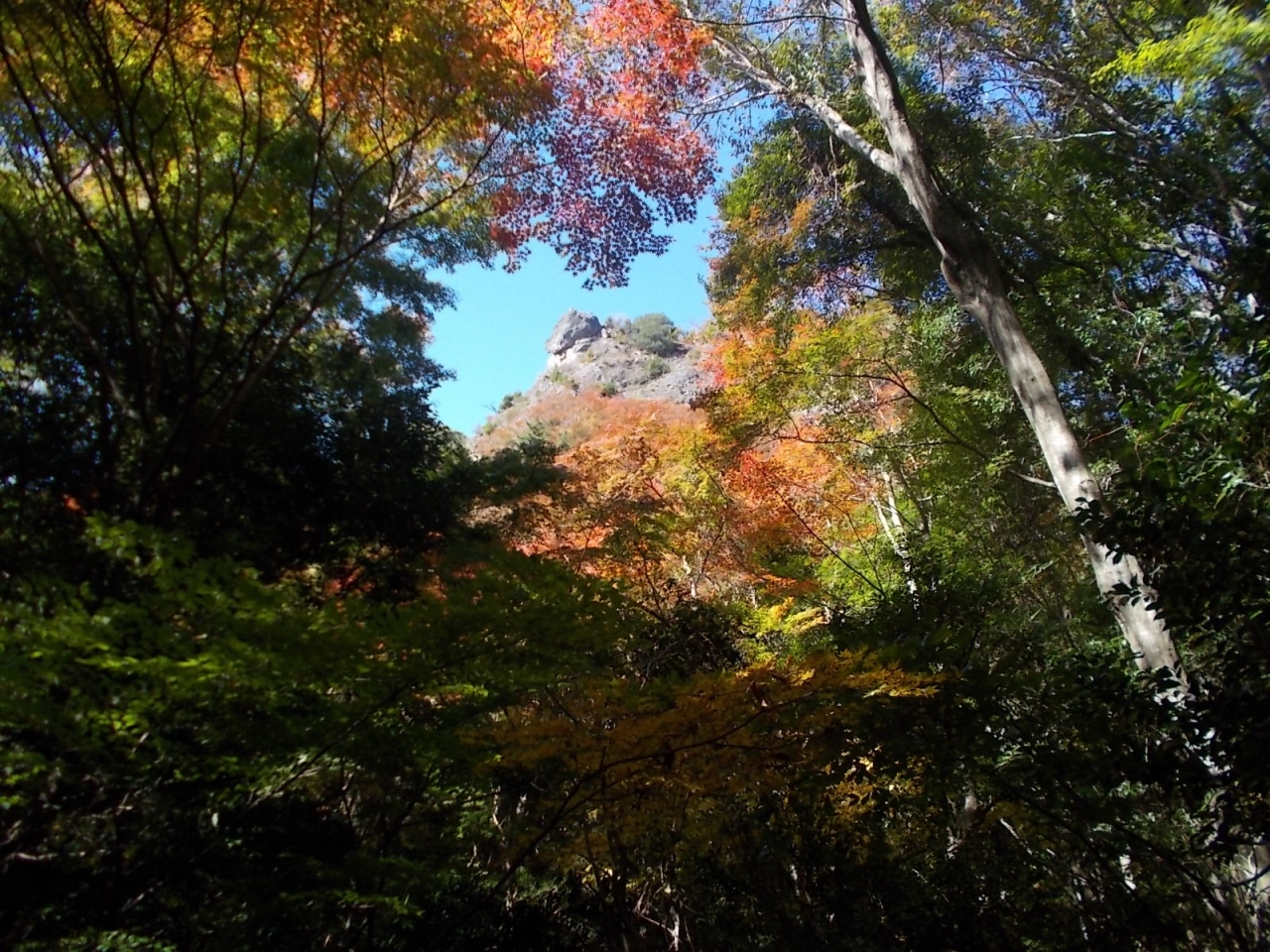 紅葉の時期、表十二景の遊歩道を歩く人はけっこうたくさんいました。登りでロープウェイを使って、下りるとき遊歩道でという人が多いみたいです。裏八景のほうを歩く人はあまりいません。わたしは両方歩きましたが、どうしても地上から見る景色は部分的になってしまいます。上から全体を見渡せるロープウェイのほうが景色は良いだろうと思います。
