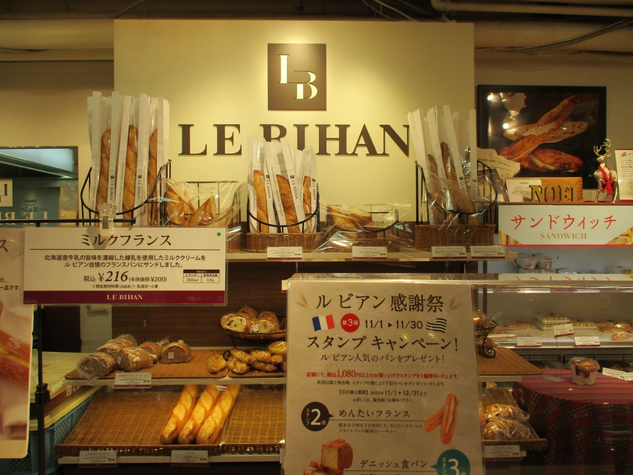 ルビアンは昔から阪神百貨店に入っているパン屋さんです。梅田に行った時、数年ぶりに足をのばしてみました。もともとは広いスペースのパン屋さんで作っているところも見れたし、商品数は多かったのですが、今リニューアル中で規模が縮小されていました。食べたかったパンは見当たらなかった。(年月も経っていますが・・)せっかくなので朝食用にフランスパンを購入しました。意外にお手頃なお値段でした。ハーフサイズもありました。
