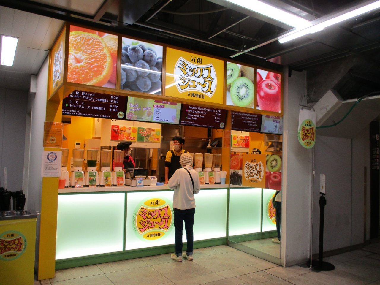 阪神梅田駅の改札前にある有名なジュースのお店です。阪神百貨店からすぐ行けます。