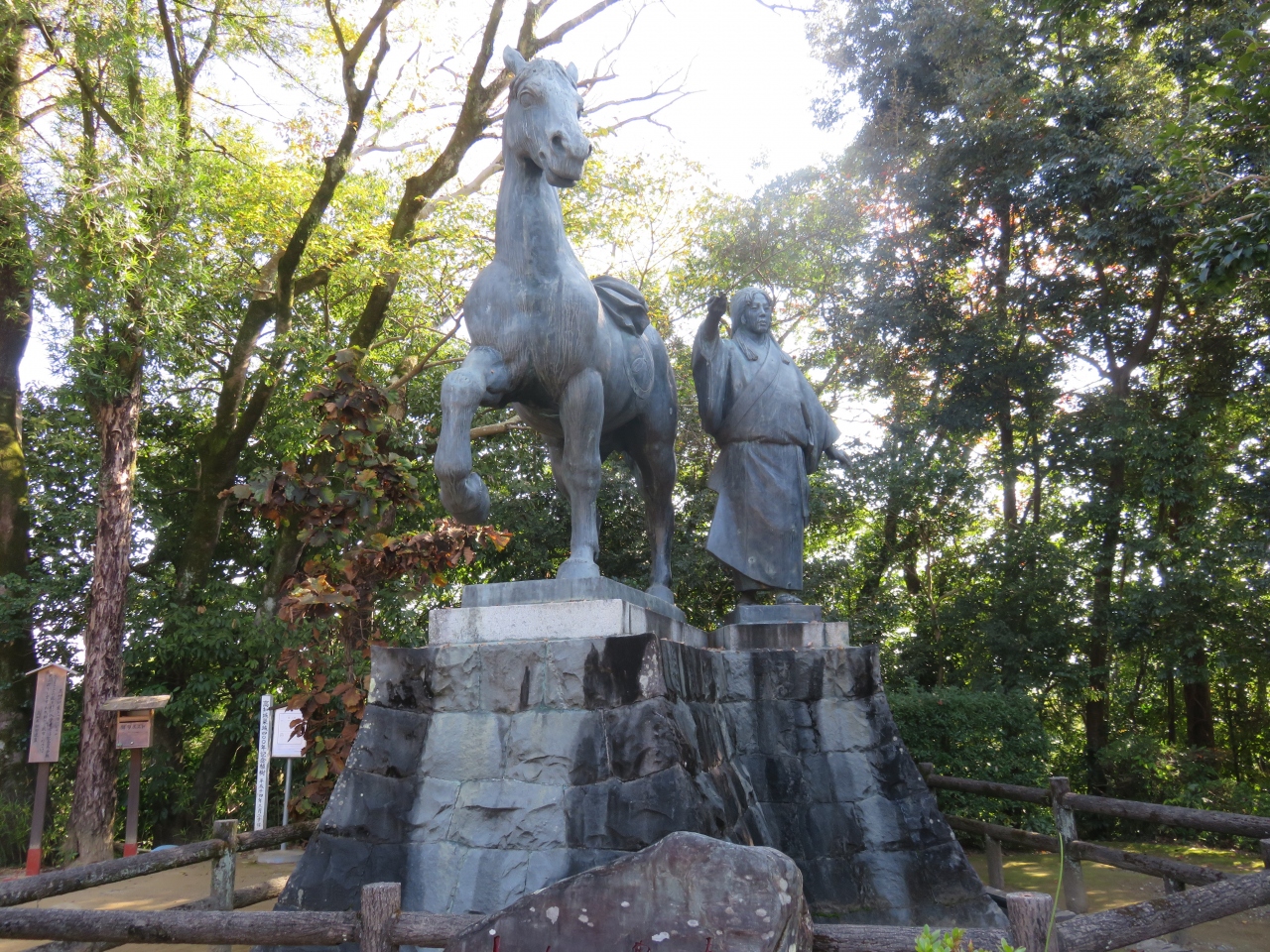 高知城内にある山内一豊の妻の銅像です。藩主一豊より有名というのが不思議です。本名もわからない女性を内助の功の典型のように仕立てた、あまり共感しないエピソードの持ち主です。家計が苦しいなかで立派な馬を「主人のため」に買ったとか。