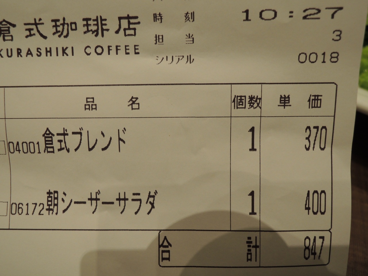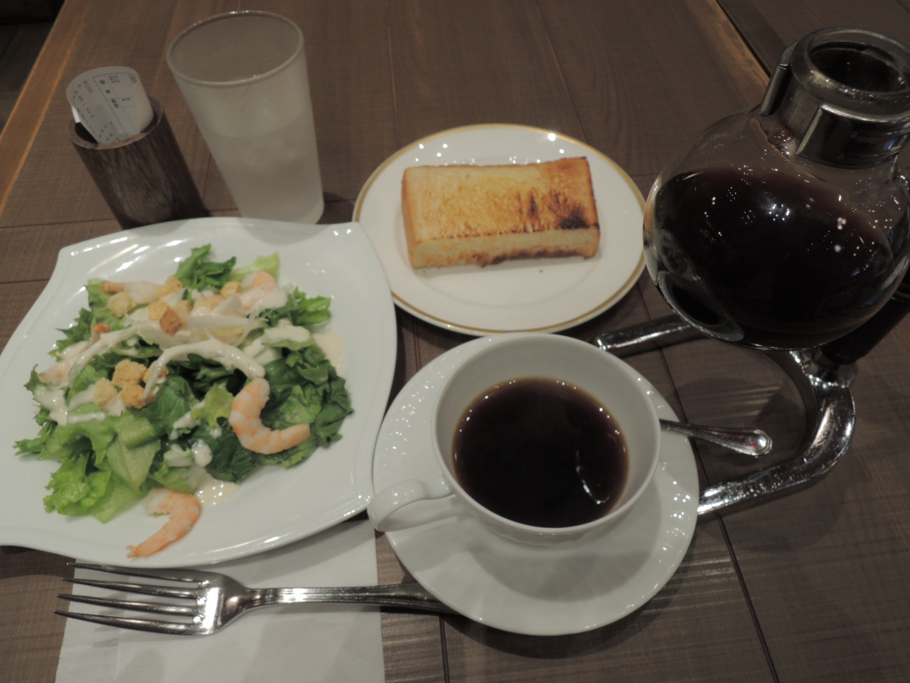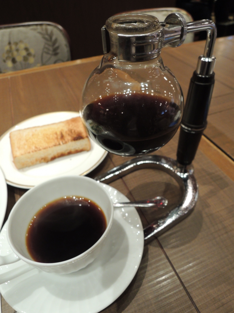 京都桂川のイオンモールにある喫茶店。洒落たお店、椅子は布張りで座りやすい。ゆったりと時間が使えるお客には最適空間かも。トーストが付くモーニングだけでは物足りないので、シーザーサラダもオーダー。このサラダは新鮮でみずみずしくて新鮮。むき身のエビが乗っているのも食欲をそそる。コーヒーはサイフォン式。最近では珍しい。香りが強く苦みもほどほどある素晴らしいコーヒーだ。本格的なコーヒーを落ち着いた店内で飲めるのはすごくリッチな気分。また、京都に来る機会があれば、是非とも訪れたくなる喫茶店だ。