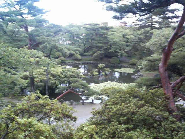 周囲を背の高い松の木に囲まれていて静かで風流な感じで、噴水や蓮が華を添えてました。