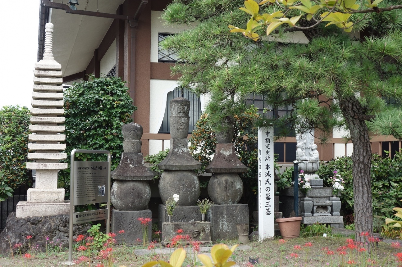前橋あたりのエリアを散策中こちらの場所を訪れました。曹洞宗の寺院長昌寺の境内に3基のお墓が置かれていました。近くの解説版を見ると、東北の最上家の家臣であった本城氏のお墓だそうで、墓石の五輪塔はかなり古いものの様でした。