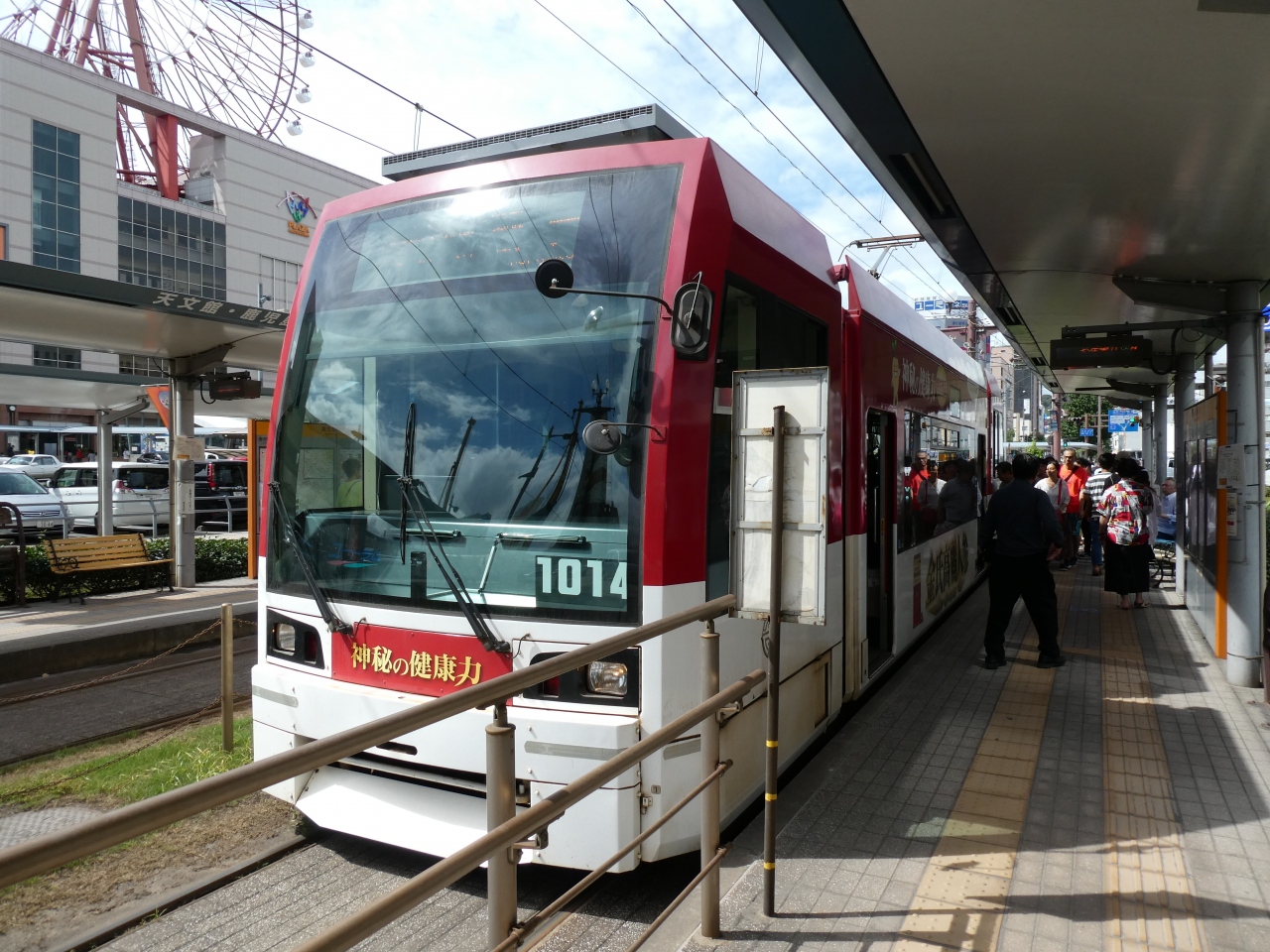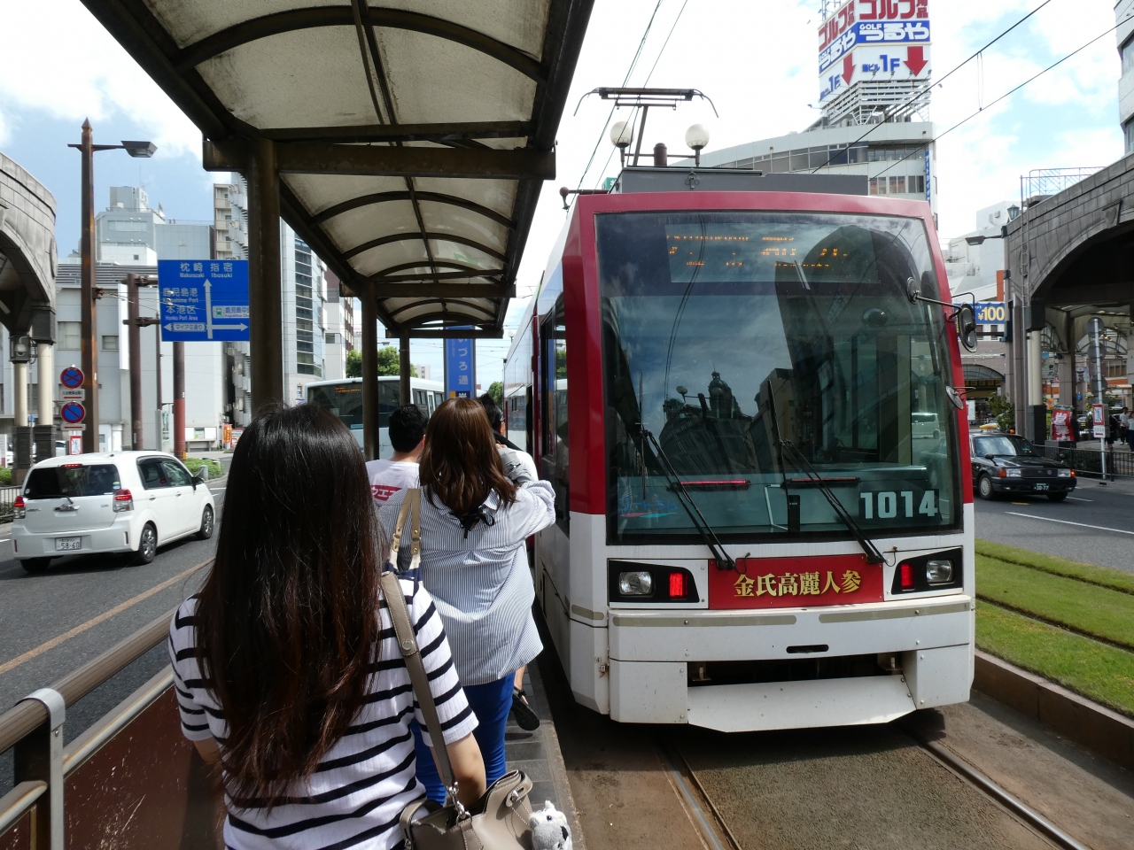 鹿児島市内に複数系統で運行している鹿児島市電、レトロな車両も良いのですが今回利用したのは新型の低層車で「いずろ道」から「鹿児島中央駅前」電停までです。