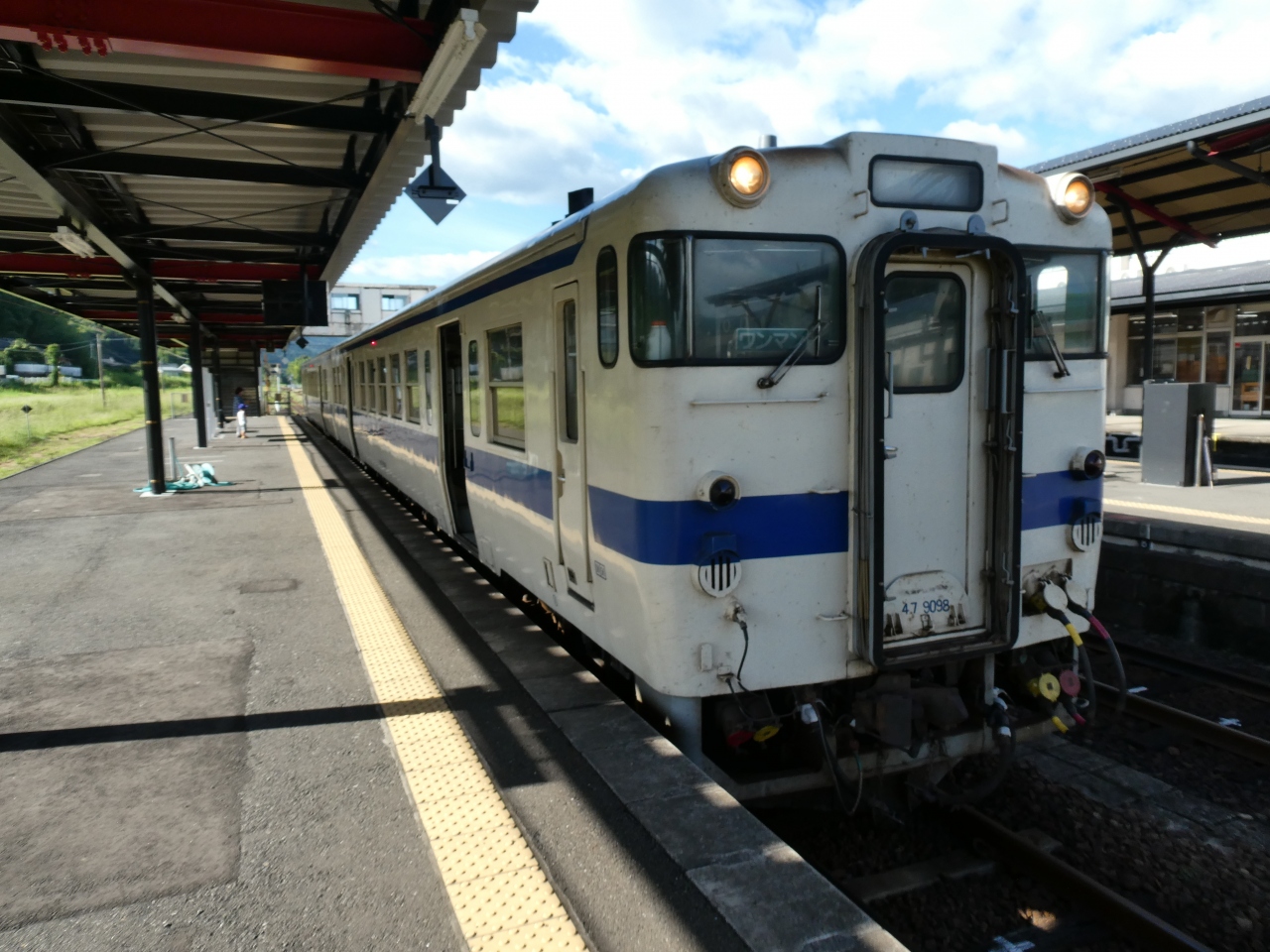 今回乗車したのは吉松(16:32発)⇨隼人(17:29着)の2両編成の気動車です。