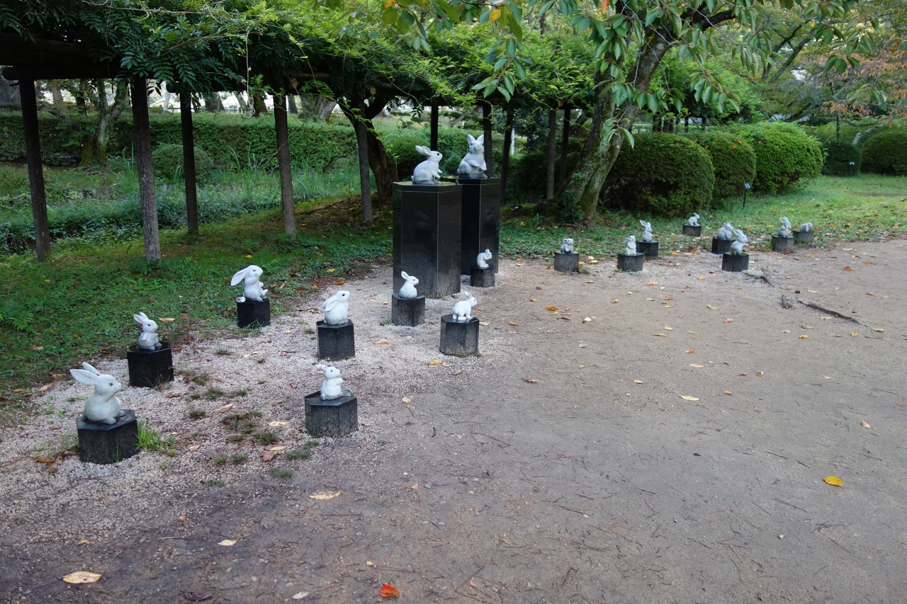出雲市駅からは、バスもしくは一畑電車でいくことができる。御本殿、拝殿、神楽殿の他に「いなばのしろうさぎ」がモチーフとなった大国主大神さまとウサギの青銅の御像の他、現在46羽のウサギたちがいます。すべて探してみるのもよいのでは。