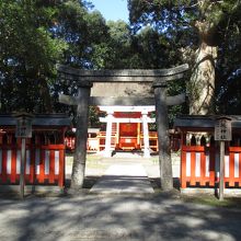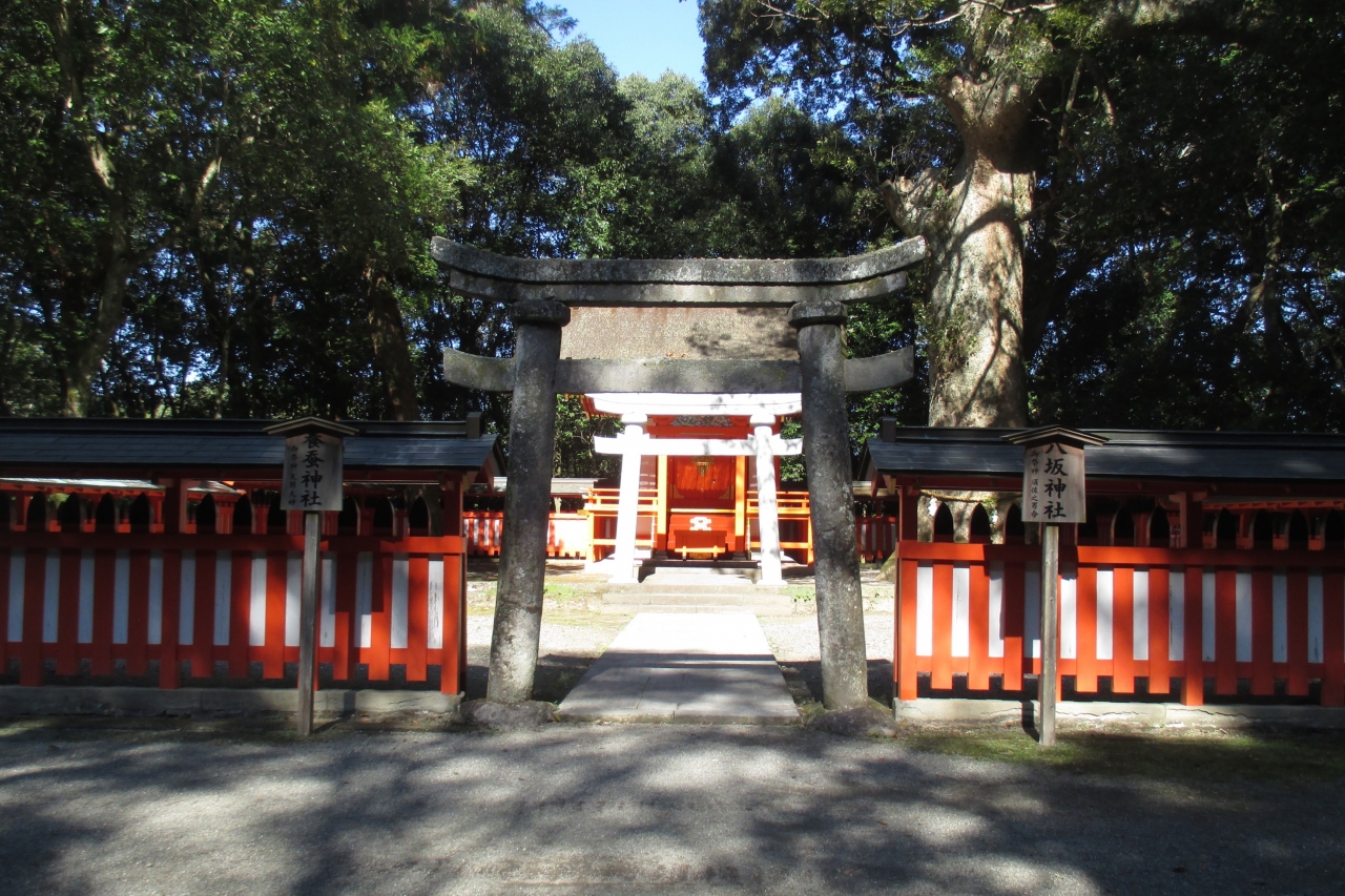 祓所の前を、左に行けば上宮ですが、反対の右に行くと、八坂神社・養蚕神社があります。メインの参道から離れているので、空いています。鳥居の右に八坂神社、左に養蚕(こかい)神社と書かれています。元々あったのは宇佐神宮の末社である八坂神社で、かつては祇園社といい、明治に廃された弥勒寺の守護神として祀られていたとのことです。一方の養蚕神社は、宇佐市の別の場所に鎮座していたものを、1988年(昭和63年)にこちらに移されたのだそうです。