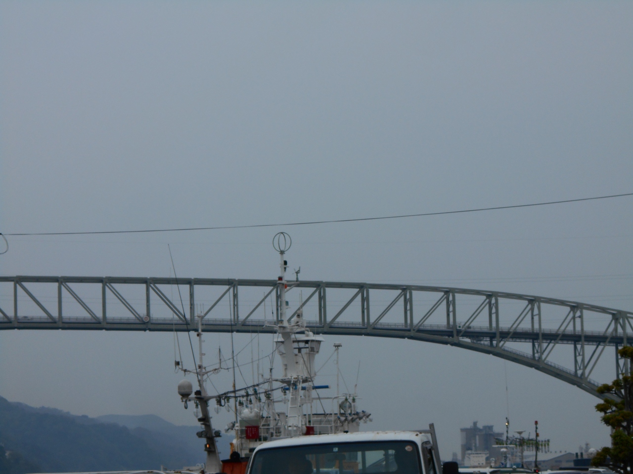 全長709メートル、高さ40メートルのアーチ橋です。大型船舶が通行できるように高さがあるので風光明媚な景色が楽しめます。高低差のある地点を結ぶ橋は上路式と下路式とを組み合わせた載荷弦として、左右非対称のフォルムを描いています。