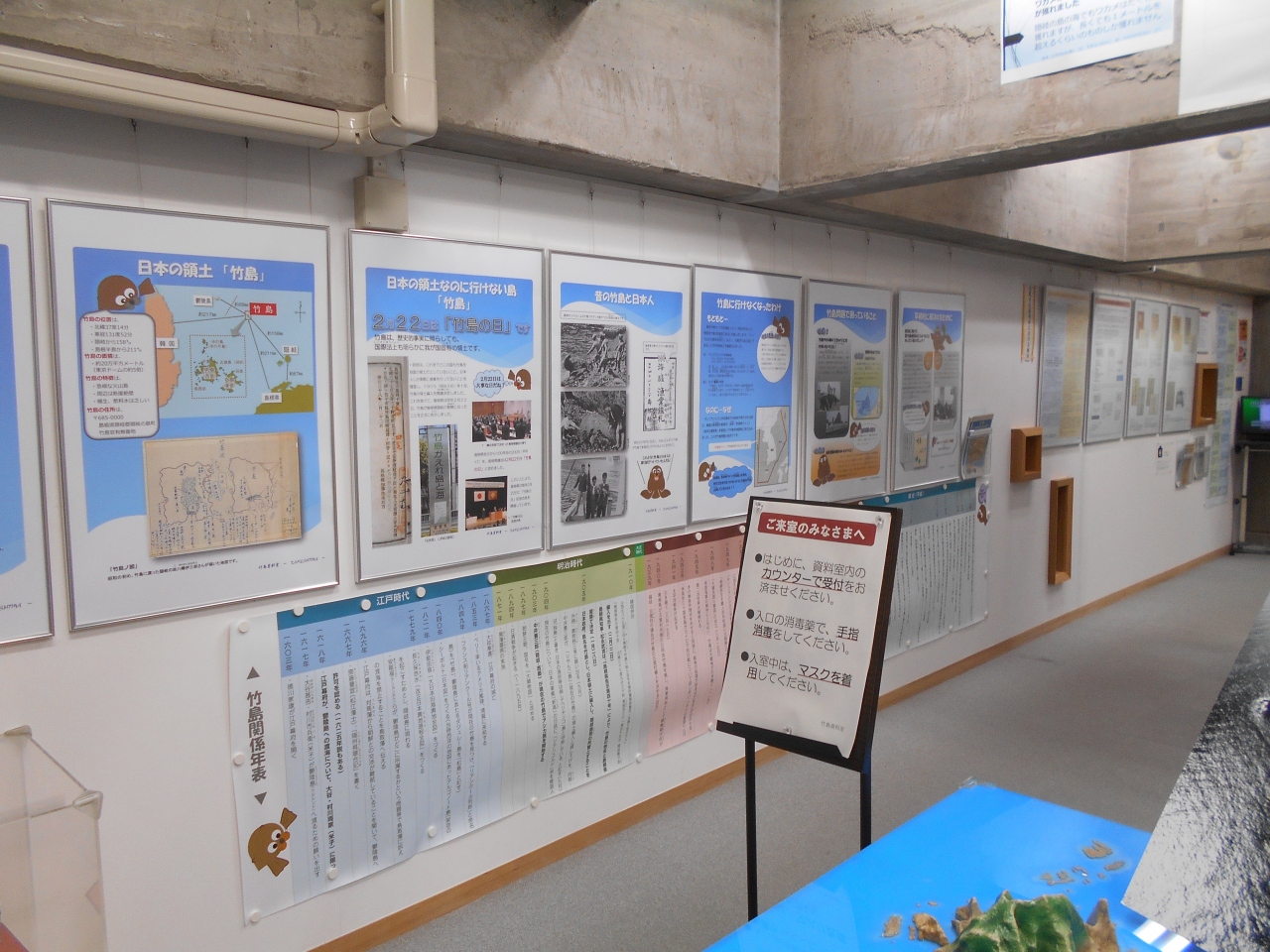 限られたスペースにパネル展示の羅列で、ていねいに見ようという気が削がれてしまいました。内容がお堅いだけに、もっとわかりやすくする工夫が必要です。竹島が日本の領土だという国民の気分を盛り上げたいという気概を感じませんでした。