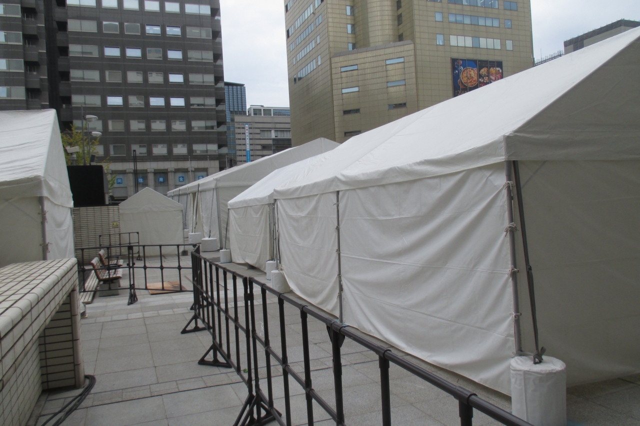 福岡市役所の1階にある市民ロビーを訪れましたが、正面の方の入口には行けず、議会側の入口の方に誘導されました。平日に訪れたのですが、週末に何かイベントが開催される様で、ふれあい広場いっぱいにたくさんのテントで溢れていました。