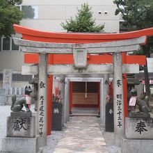 今益神社は、五穀豊穣の神である「宇迦之御魂神(うかのみたまのかみ)」が祀られていますが、そのお使いである二体のおきつね様が笑っていました。「笑いきつね」というそうで、「笑い」こそが、福を招き、災いを祓い、商売を繁盛させるし、良縁も結べるとなっています。お参りのあと、笑いきつねを撫でると、福が付いてくるそうです。