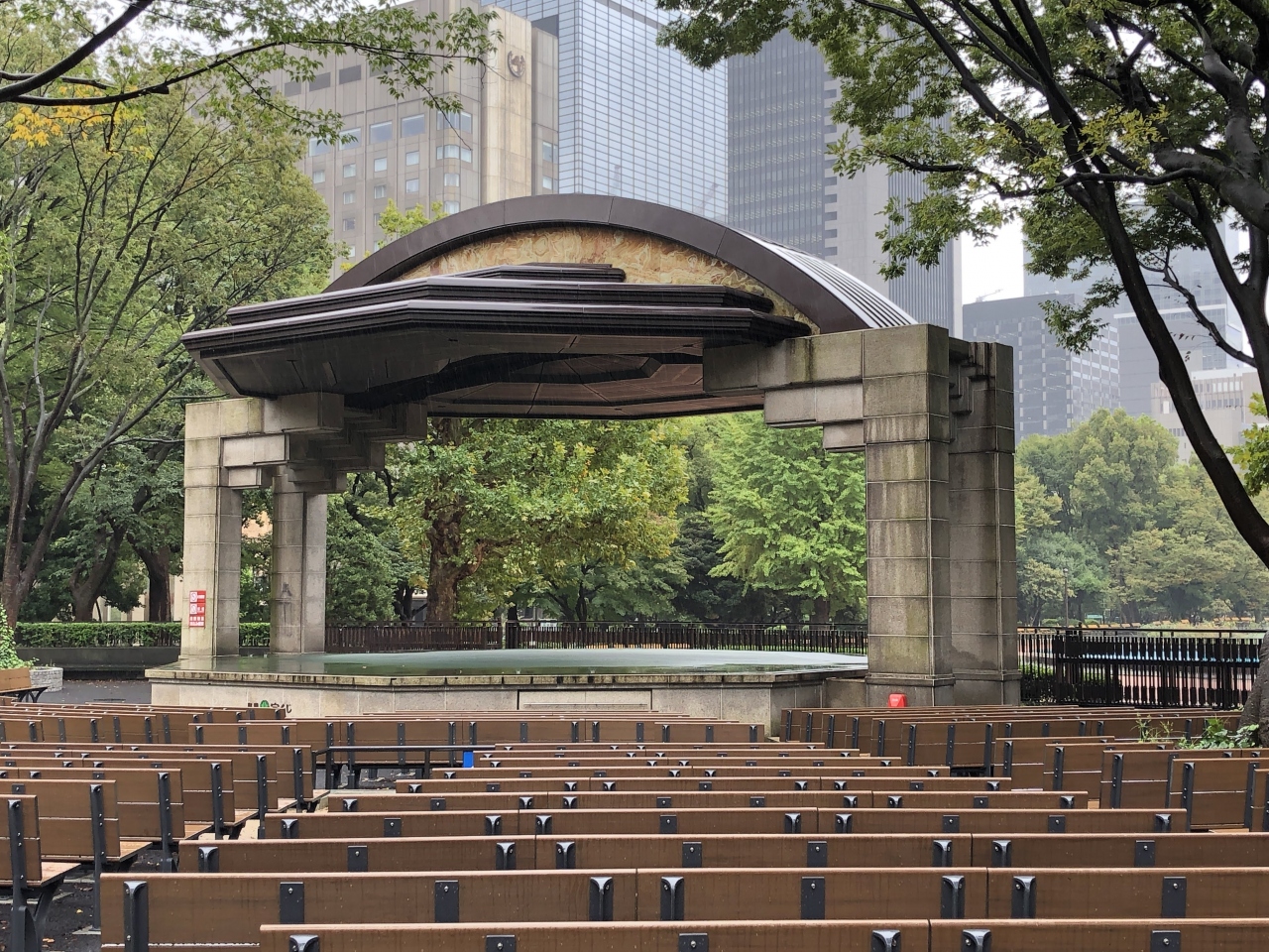 日比谷公園を散策しているときに通りかかりました。東京には今まであまり縁がなかったものの、日比谷の野外音楽堂については聞いたことがあったのですが、今回の訪問で小音楽堂という施設があることも知りました。公園内・周辺には文化的な施設も多く、文化水準の高さが感じられました。