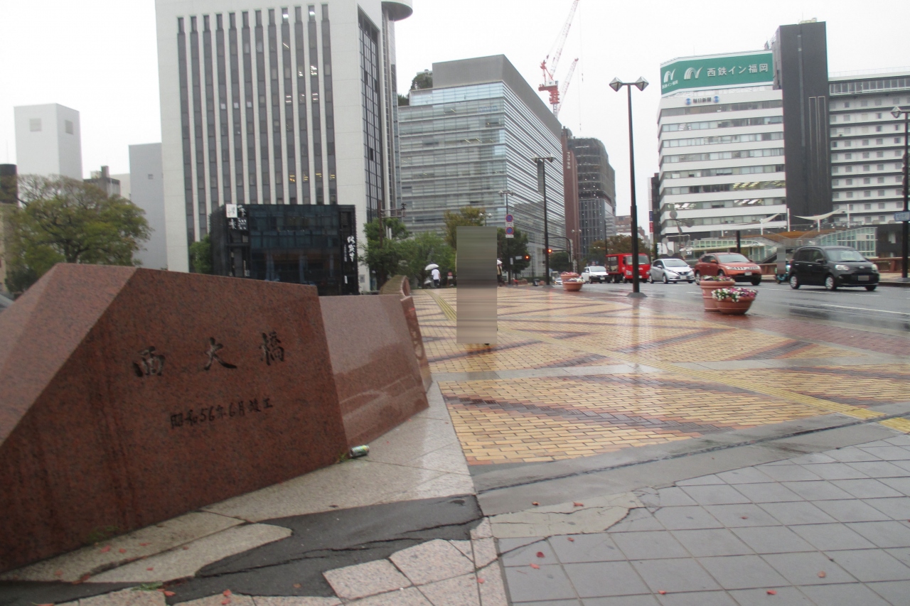 天神と中洲を繋ぐ橋はいくつかありますが、この西大橋は明治通りが那珂川に架かっている橋です。主要道路の1つなので交通量は多いですが、昭和通りと違って片側2車線です。でも、歩道は広々としています。酔客がプラプラと酔い覚ましがてらに渡る橋なのかも知れません。