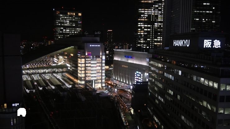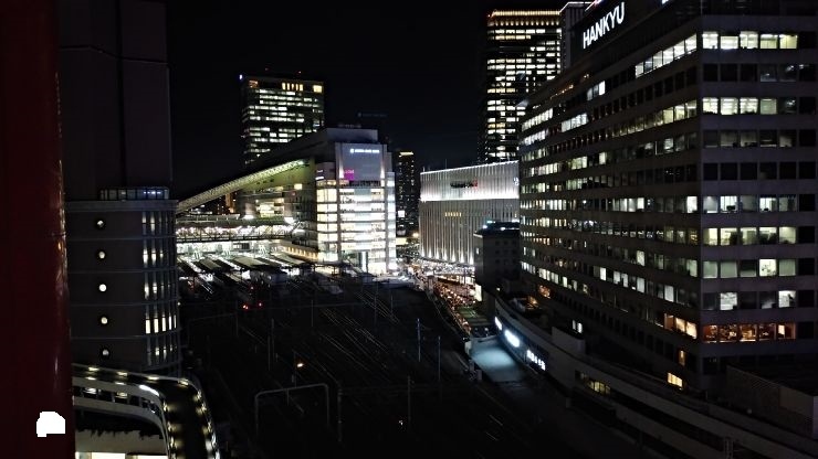 ビルの間を徐々に高度を上げ、梅田のビル群が見られる眺望に。JR大阪駅が正面に見え、町の中心部にいながら、観覧車で風景を楽しむことができるのが素晴らしい。1周約15分で、手軽に楽しむことができた。