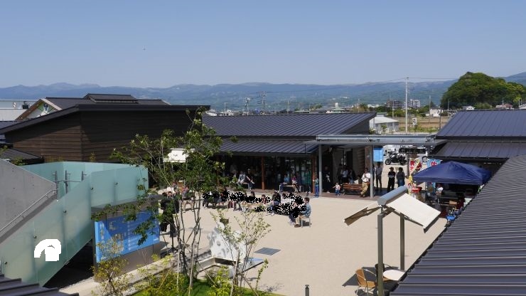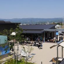 中央に広場があってそれを囲むように店舗があるのが特徴。2階部分は展望デッキになっていて、富士山などの風景が見られた。