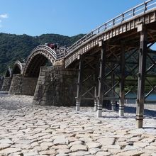 5連のアーチ構造は横からの眺めも見ごたえあり。渡っても良し眺めても良しの橋だった。橋を渡った先には岩国城等の観光施設があり、あわせて楽しめた。
