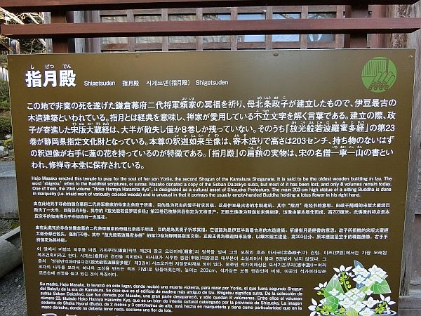 将軍職を剥奪された上に修禅寺に幽閉され、さらに入浴中に実の祖父・北条時政の差し向けた刺客に暗殺された鎌倉幕府2代将軍・源頼家の供養のために建てられました。建てさせたのは、時政の娘かつ頼家の母でもあった北条政子です。その政子は晩年に勃発した承久の乱では、御家人たちを鼓舞して後鳥羽上皇軍を撃破し「尼将軍」として君臨するほどの人物でしたが、父・時政に刃を向けていません。ですから、頼家の死を嘆き悲しんだというよりも祟りを恐れての供養のためだったのかなと穿った見方をしながらお参りしました。真相はどうなのかなと気になりました。