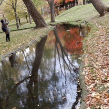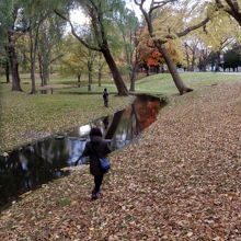 芝生の間に蛇行するように流れているので景観がよく