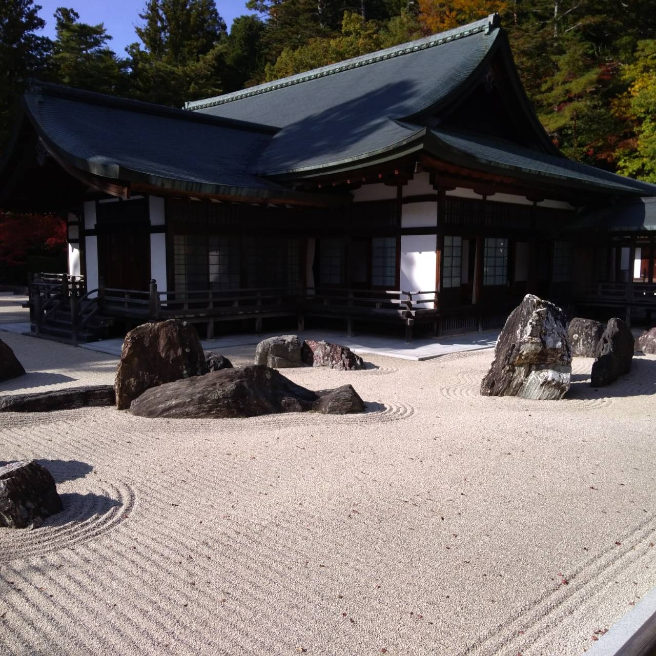 高野山の見どころのひとつ金剛峯寺を拝観しました。特にお庭が素晴らしく左に雄龍右に雌龍を表しています。この龍に使われている石は弘法大使が修練を重ねた四国の石を使用しています。この庭は「蟠龍庭」と呼ばれていて、金剛峯寺を訪れたさいは、必ず拝観したいお庭です。