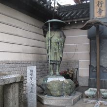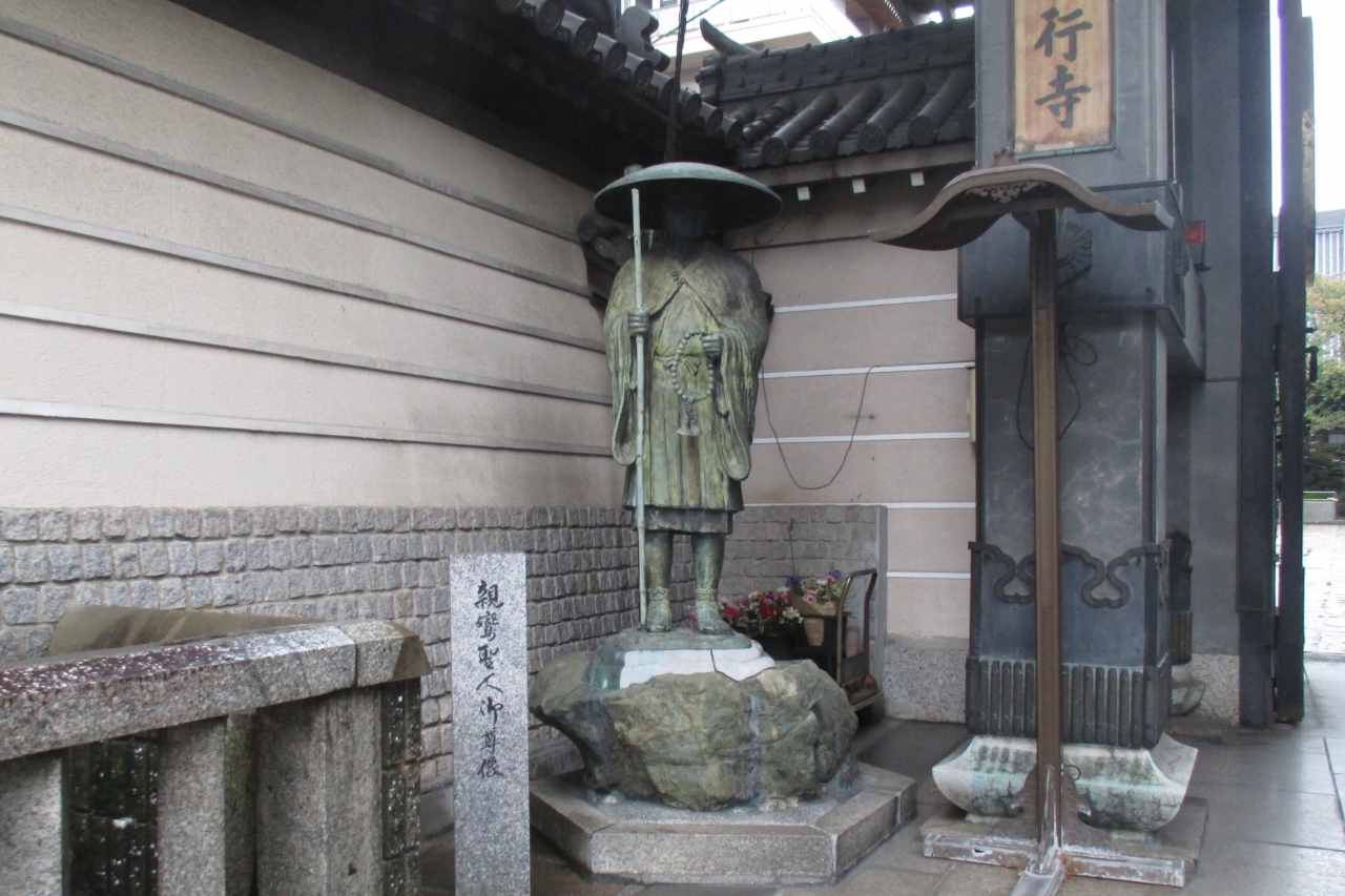 1529年(享禄2年)に創建された寺院とのことですから、約500年の歴史があります。大きな家紋の付いた立派な山門があります。浄土真宗(本願寺派)のお寺さんなので、この山門横に隠れる様?に親鸞聖人の像があります。本堂も大きな屋根の乗った大きな建物です。