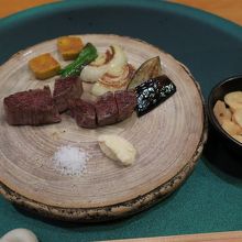 ANAクラウンプラザホテル京都内にある、鉄板焼きレストラン。ANAホテル系列では多くのホテルで鉄板焼きレストランがあるが、ガーリックライスに色々店により違いがあり面白い。ガーリックライス以外にもこちらでは焼き野菜には京野菜や生麩など、京都らしさも出ている。