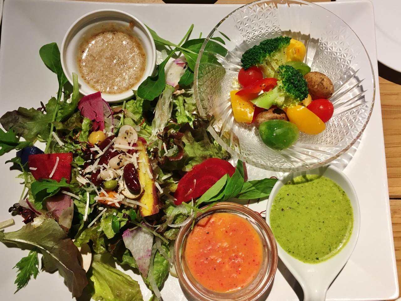 JR新福島駅と野田阪神駅の中間にあり、アクセスはあまり良くありません。TVでお店が紹介されていたそうで、お友達に誘われて訪問しました。野菜がメインとのことで、野菜が楽しめるメニュー30種類の野菜を使った農園サラダや野菜たっぷりサラダピザなどを注文しました。お料理は見た目も鮮やかです。備え付けてあるドレッシングがとても美味しかったです。野菜以外にも色々とメニューがあったので、次の機会に試してみたいです。