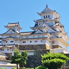 姫路城の菱の門をくぐった後、左手に曲がり坂道を上ると西の丸があります。千姫ゆかりの化粧櫓があるほか、城内で仕えていた侍女たちがいた場所です。また、ここから眺める姫路城は、松の木の緑と天守の白が美しい景観と定評がある絶好の撮影スポットです。西の丸まで見学する人は少ないのか、とても静かでした。