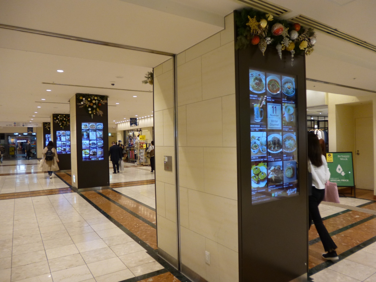 電車の乗り継ぎ時間を利用して「ウイング新橋」を散策しました。11月中旬ですが、早くもクリスマスセールが行われており、あちらこちらにリースが飾られ、「ポイント10倍」の表示がありました。残念ながら、一部のスイーツ店を除いてあまり気を惹かれるお店がありませんでした。緊急事態宣言下の時より人出は増えましたが、それでも平常時に比べるとはるかに少なく感じます。