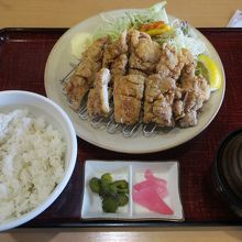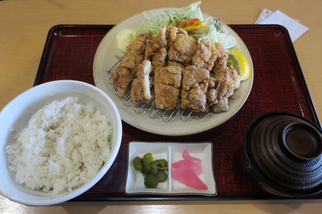 松本駅ビル「MIDORI」の4階にある食事処。生産者直営食堂とのこと。山賊焼き定食を注文。1枚肉が2枚、これに麦ごはんと味噌汁、漬物がつく。かなりのボリュームだが、値段はリーズナブルで、味も良かった。