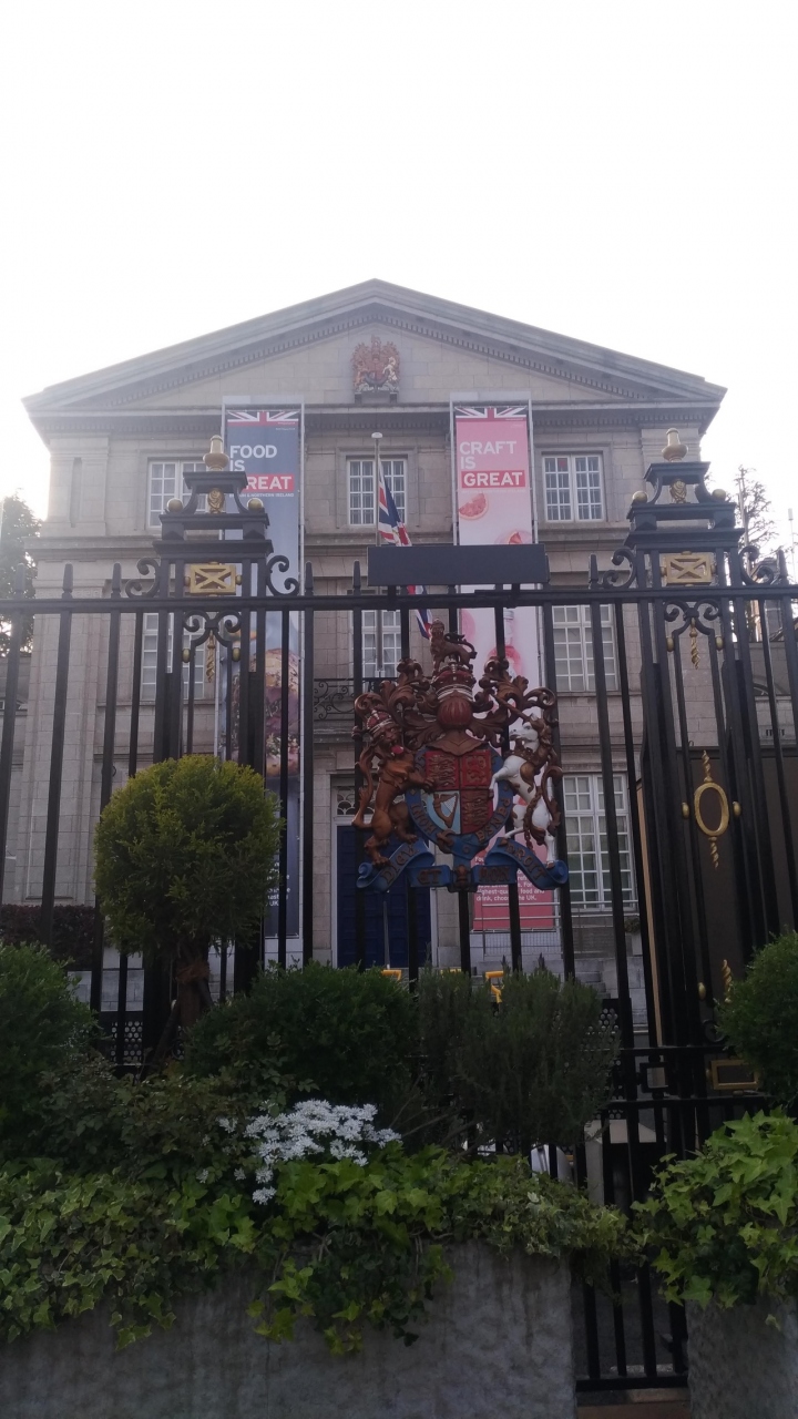 イギリスらしいクラッシックカーを模したペナントが掛かっていて、一目でイギリス大使館だと分かります。桜の名所でもあり、大使館を囲むように植えられた桜が大使館の雰囲気も相まってフォトジェニックな場所です。
