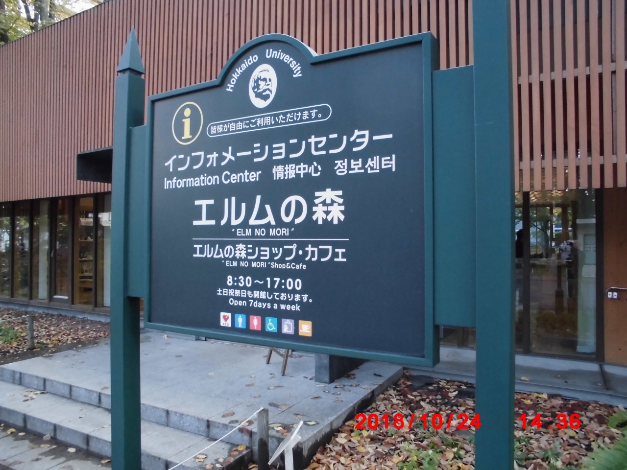 札幌駅の北に広がる北海道大学の正門を入ってすぐ左にあるインフォメーションです。カフェやショップが併設されていて北海道大学を訪れると必ず立ち寄る場所です。大学構内の学生食堂?の近くにレストラン「エルム」があって時間が合えばレストランも利用してましたが、先日閉店のニュースを見て残念な思いでいます。