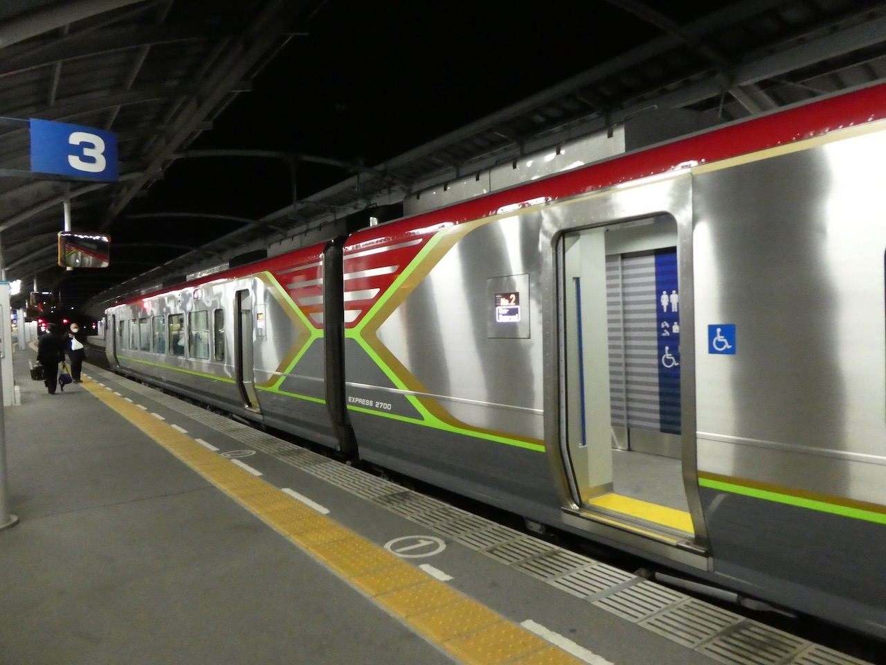 この新型車。低重心になったのか、かなり高さの低い車体で駅で見るとちょっと貧弱。それより、新車になってシートがやや快適になったのはいいのですが、座席数が減ってます。とくに自由席はかなり減った印象。ふらりと乗る場合は注意です。